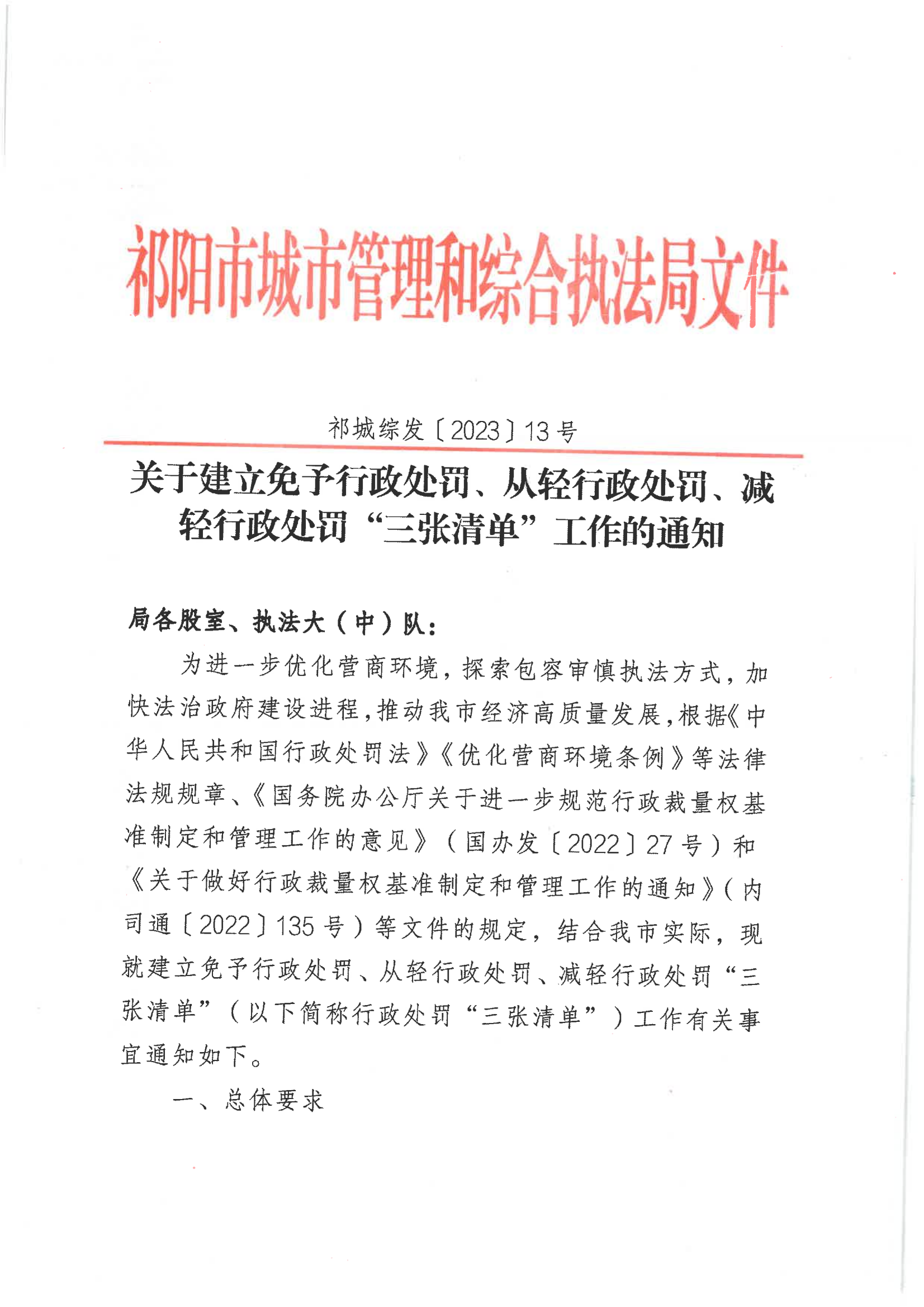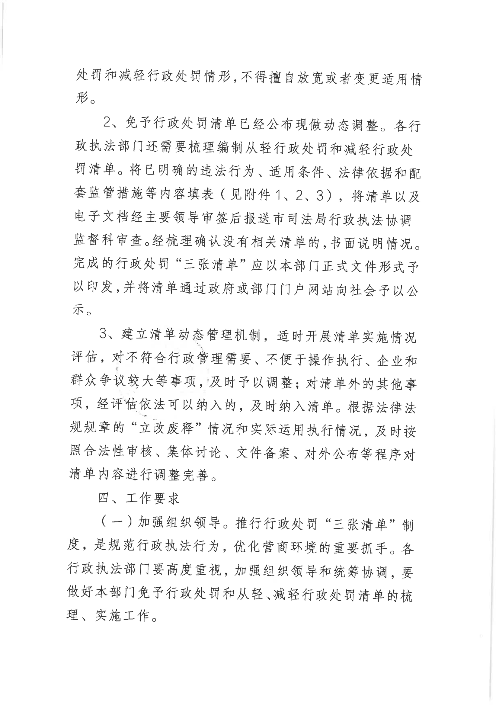 关于建立免予行政处罚、从轻行政处罚、减轻行政处罚“三张清单”工作的通知