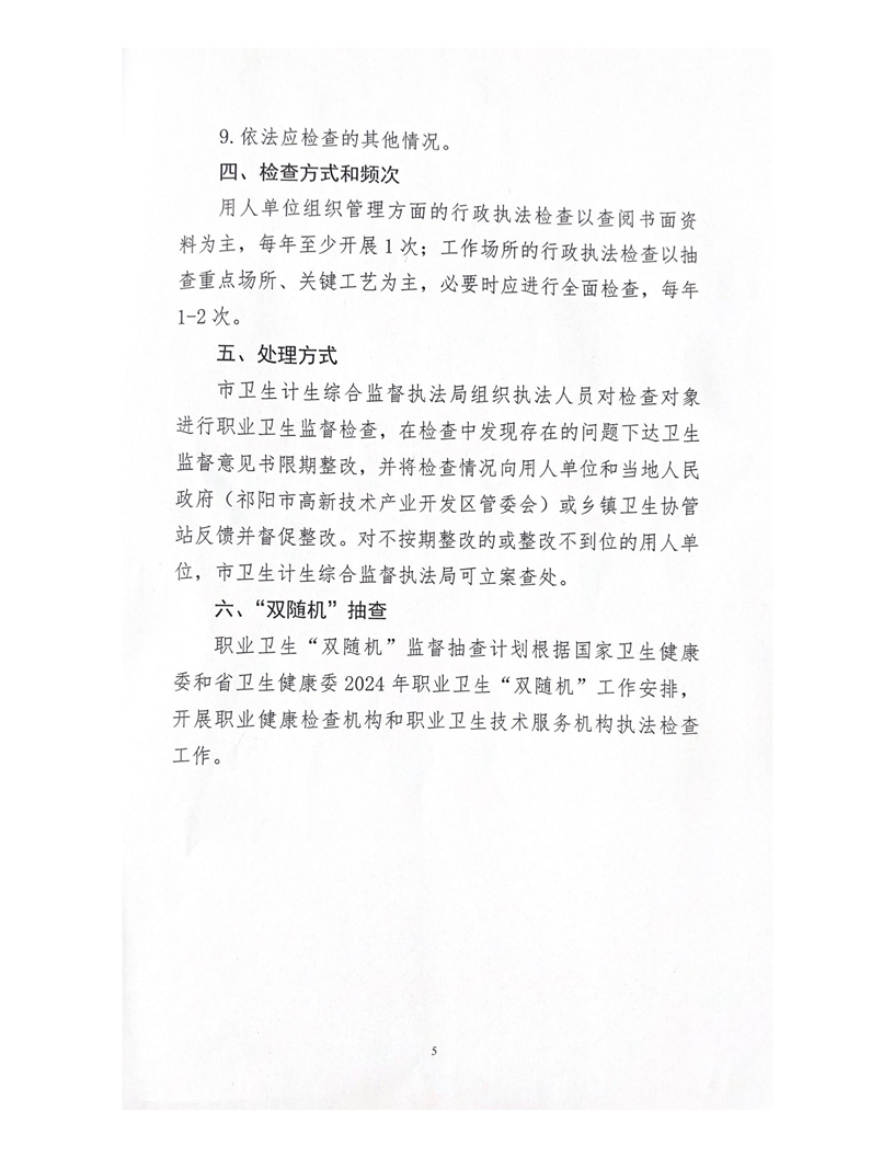 关于印发《祁阳市卫生健康局2024年度职业卫生行政执法检查计划》的通知