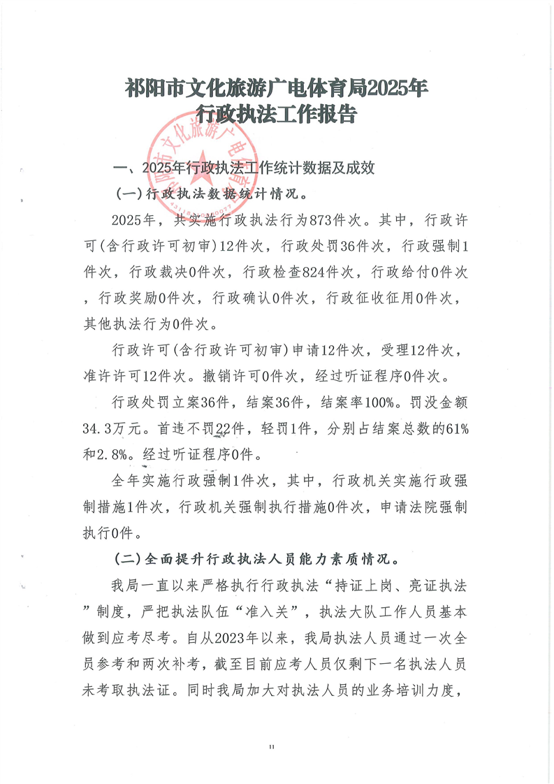 祁阳市文化旅游广电体育局2025年行政执法工作报告