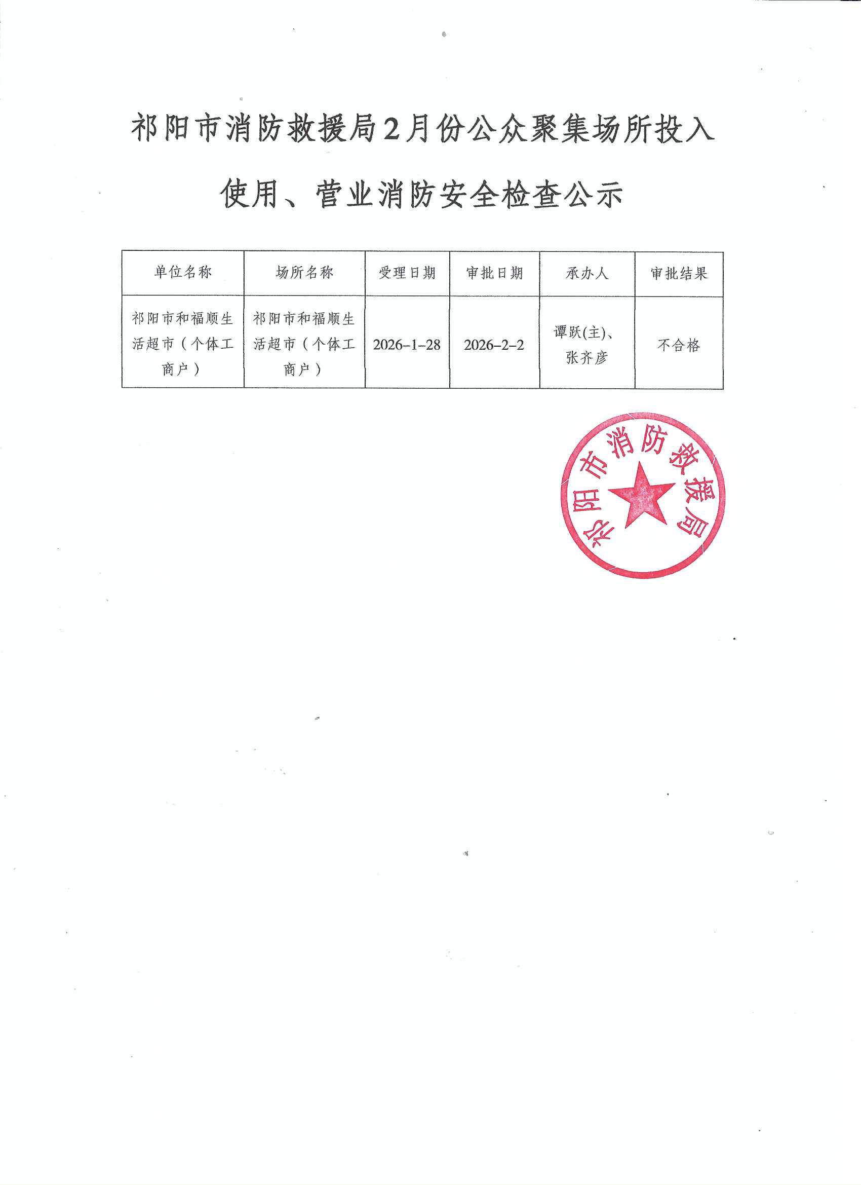 祁阳市消防救援局2月份公众聚集场所投入使用、营业消防安全检查公示