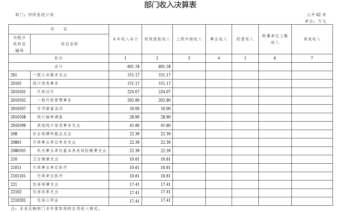 二、部门收入决算表