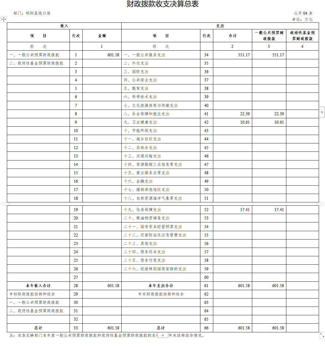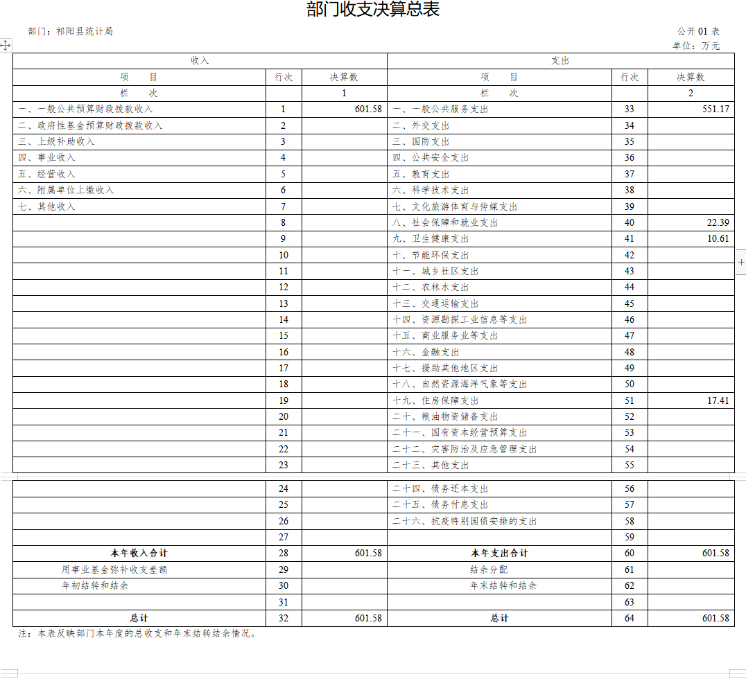 一、部门收支决算总表