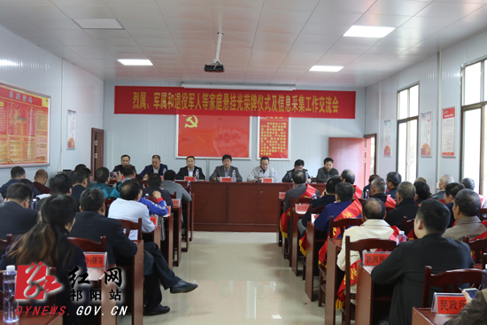4月17日上午,全县光荣牌发放启动仪式暨信息采集工作交流会在黎家坪镇雨坛岭社区举行,副县长、公安局局长沈拥政出席会议,退役军人代表,县退役军人事务局及各乡镇民政所等相关工作人员参会。