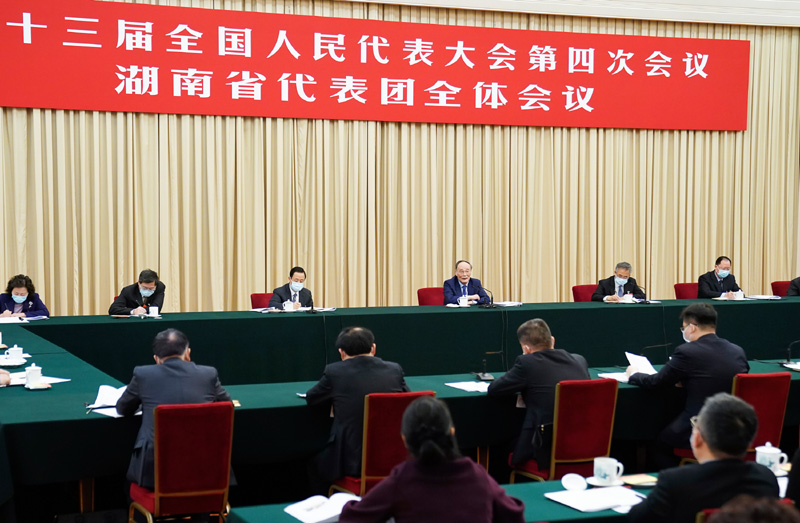 3月6日,国家副主席王岐山参加十三届全国人大四次会议湖南代表团的审议。新华社记者 燕雁 摄