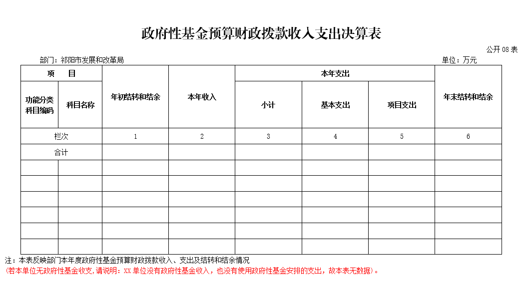 6、上年结转:指以前年尚未完成、结转到本年按有关规定继续使用的资金。