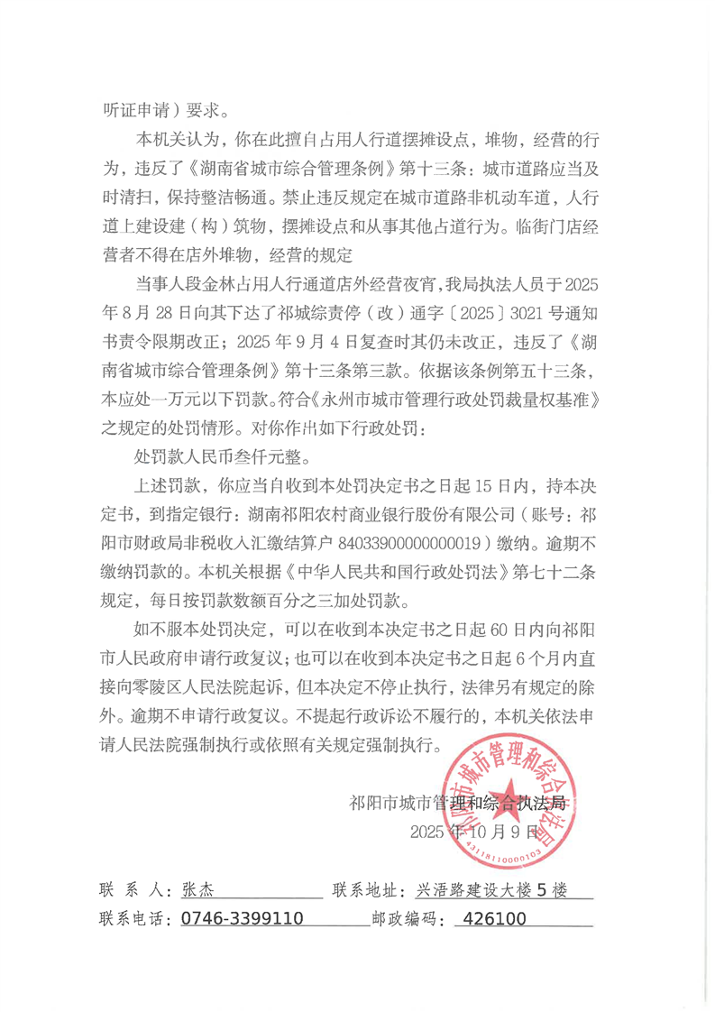 祁阳市城市管理和综合执法局行政处罚决定书 祁城执罚决字(2025) 21号