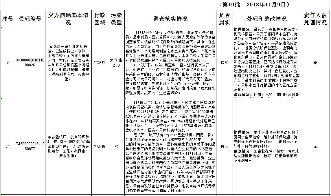 中央生态环保督察“回头看”第十批群众信访举报转办和边督边改公开情况一览表