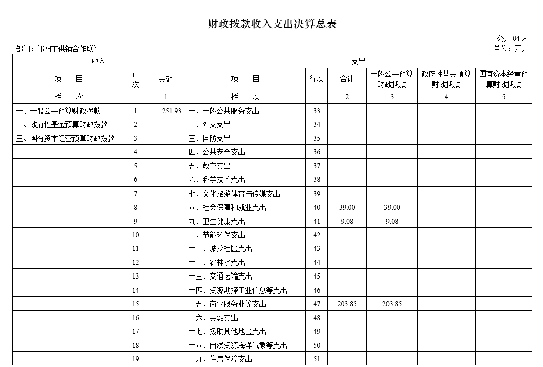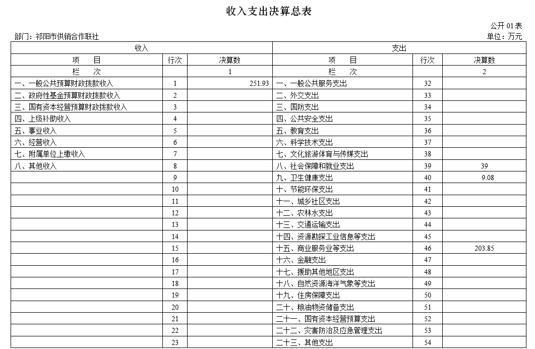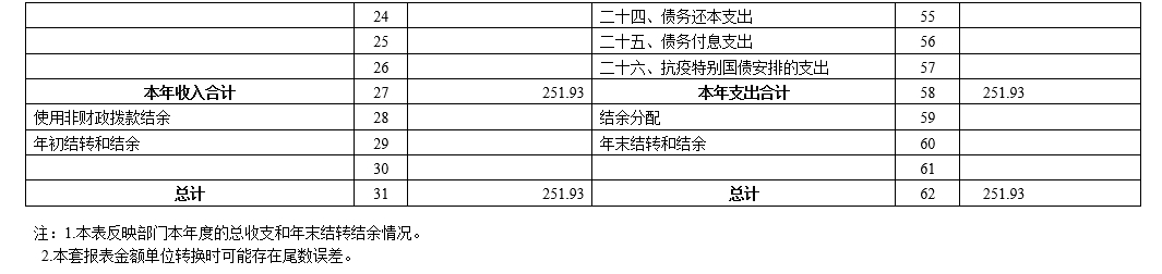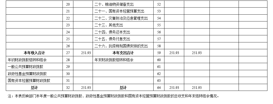 本部门2023年度收入决算数251.93万元,其中一般公共财政拨款收入251.93万元;支出决算数251.93万元,其中基本支出251.93万元,项目支出0万元。本年无结余。