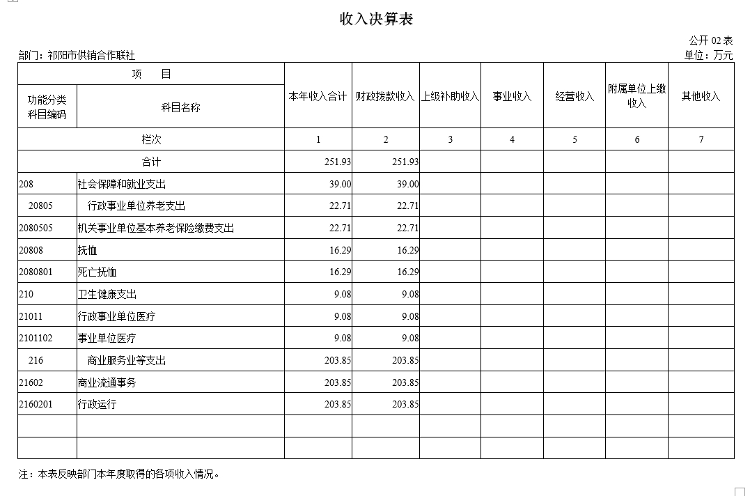 二、收入决算表