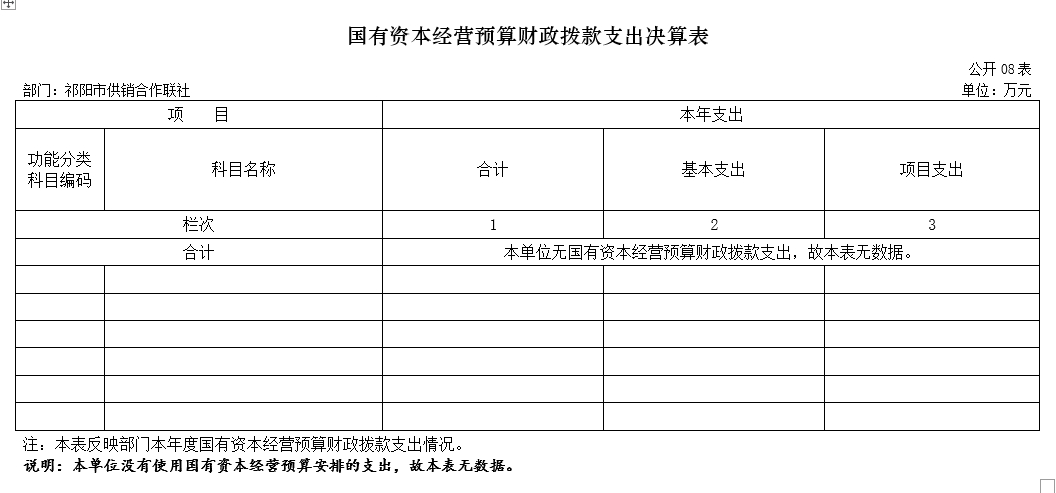 八、国有资本经营预算财政拨款支出决算表
