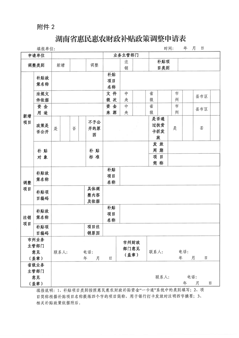 附件2:湖南省惠民惠农财政补贴政策调整申请表