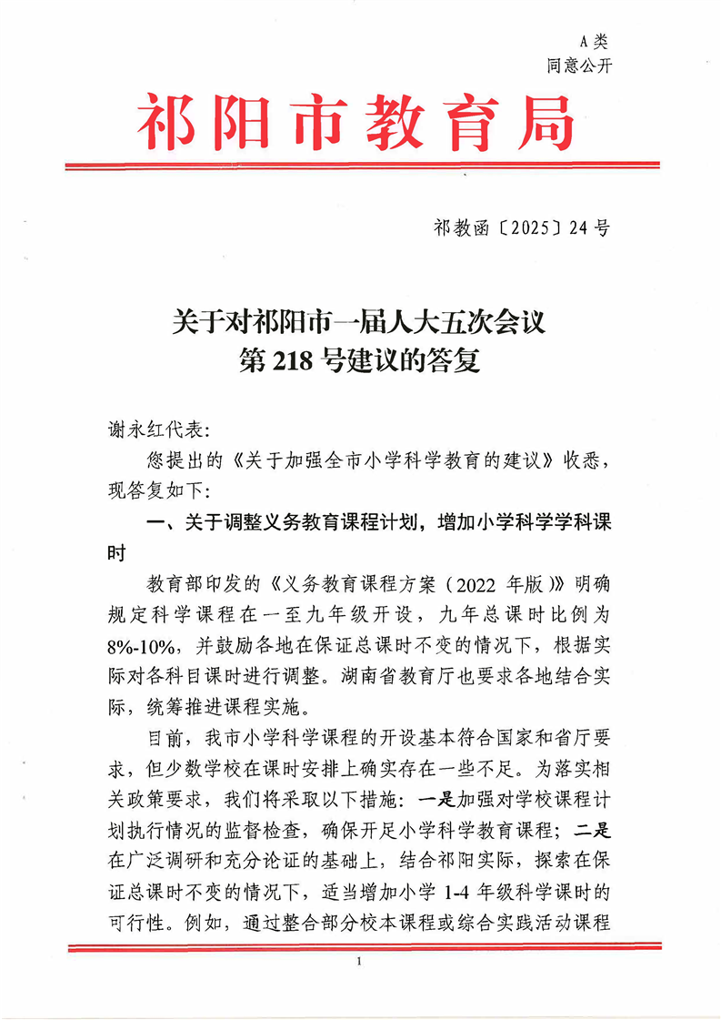 祁教函[2025]24号 关于对祁阳市一届人大五次会议第218号建议的答复