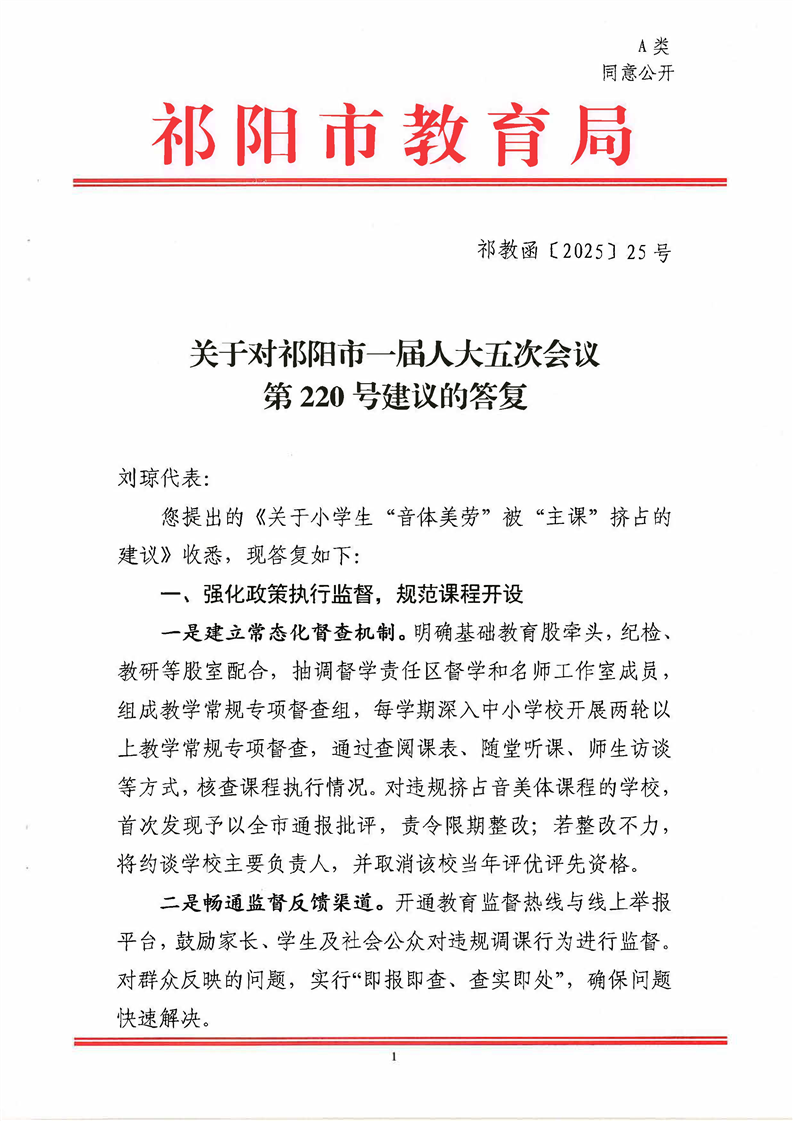 祁教函[2025]25号 关于对祁阳市一届人大五次会议第220号建议的答复