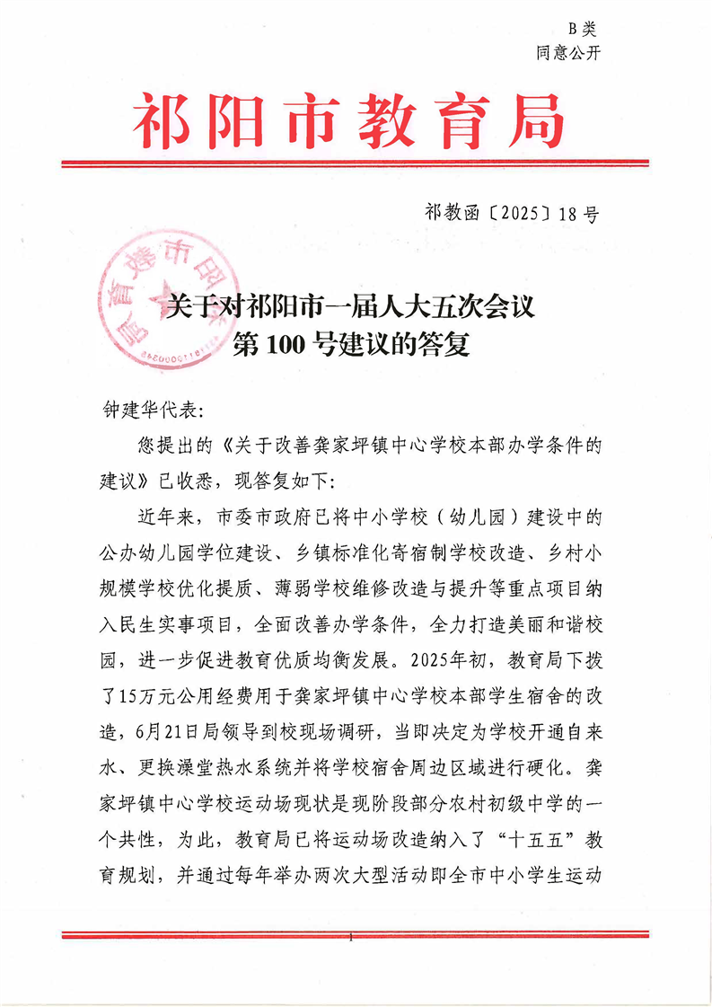 祁教函[2025]18号 关于对祁阳市一届人大五次会议第100号建议的答复