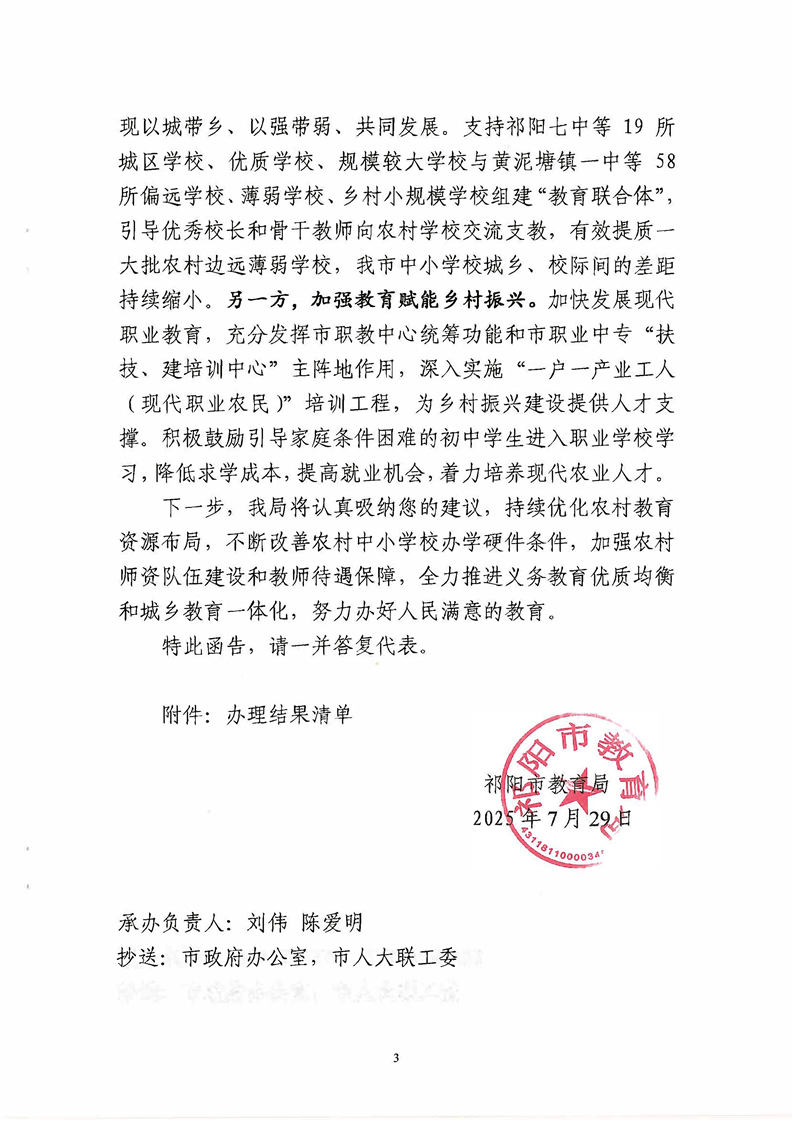 祁教函[2025]22号 关于对祁阳市一届人大五次会议第146号建议的会办意见