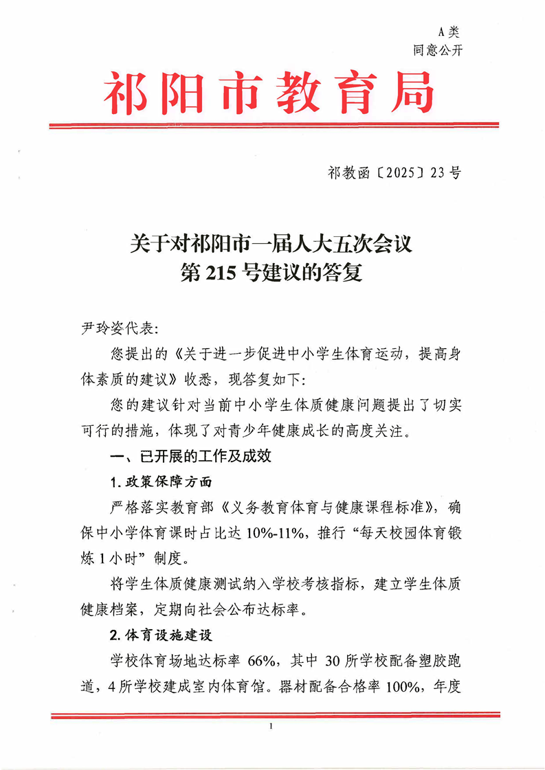 祁教函[2025]23号 关于对祁阳市一届人大五次会议第215号建议的答复