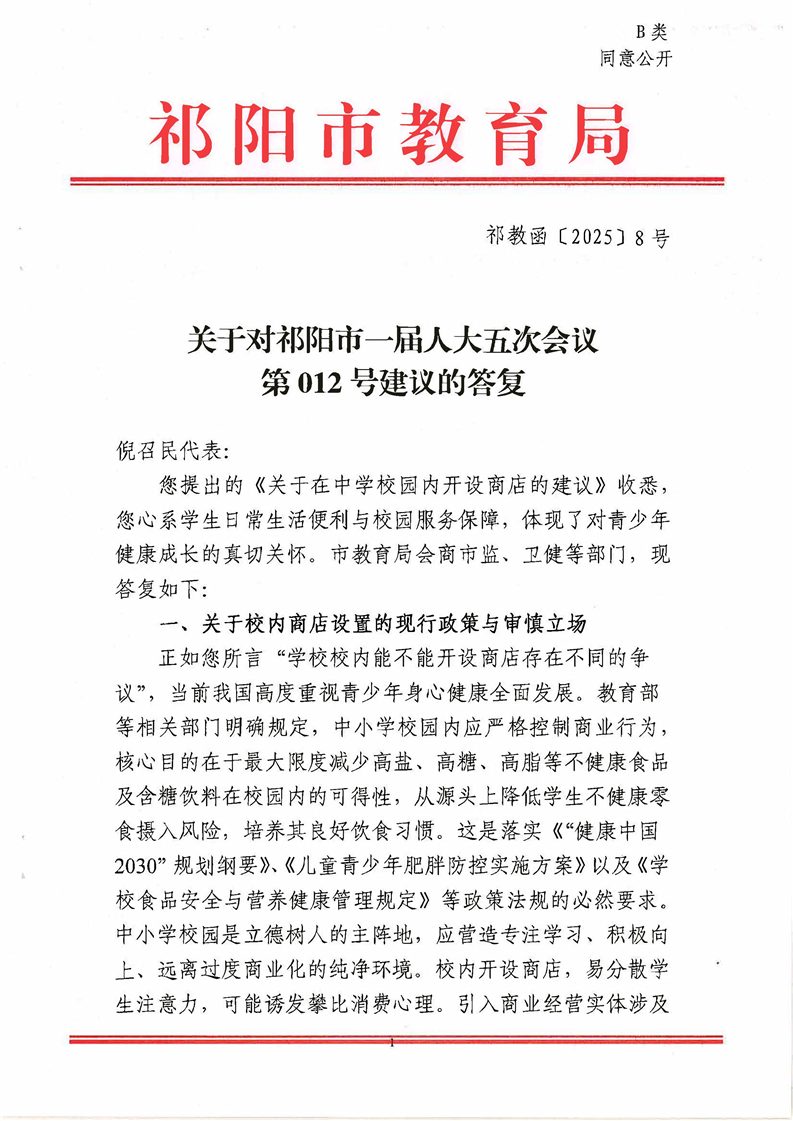 祁教函[2025]8号 关于对祁阳市一届人大五次会议第012号建议的答复