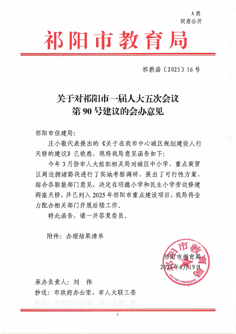 祁教函[2025]16号 关于对祁阳市一届人大五次会议第90号建议的会办意见