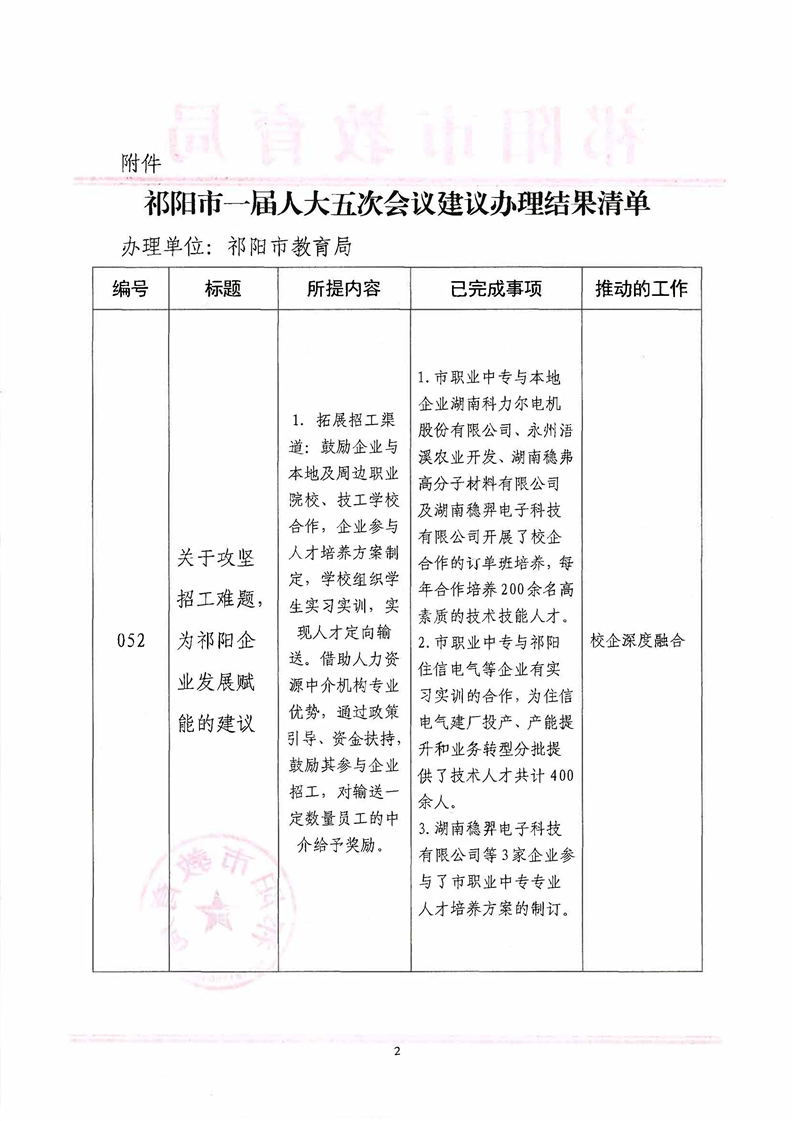 祁教函[2025]14号 关于对祁阳市一届人大五次会议第052号建议的会办意见