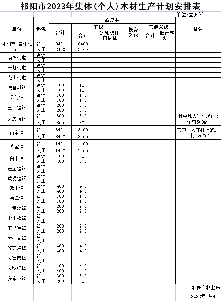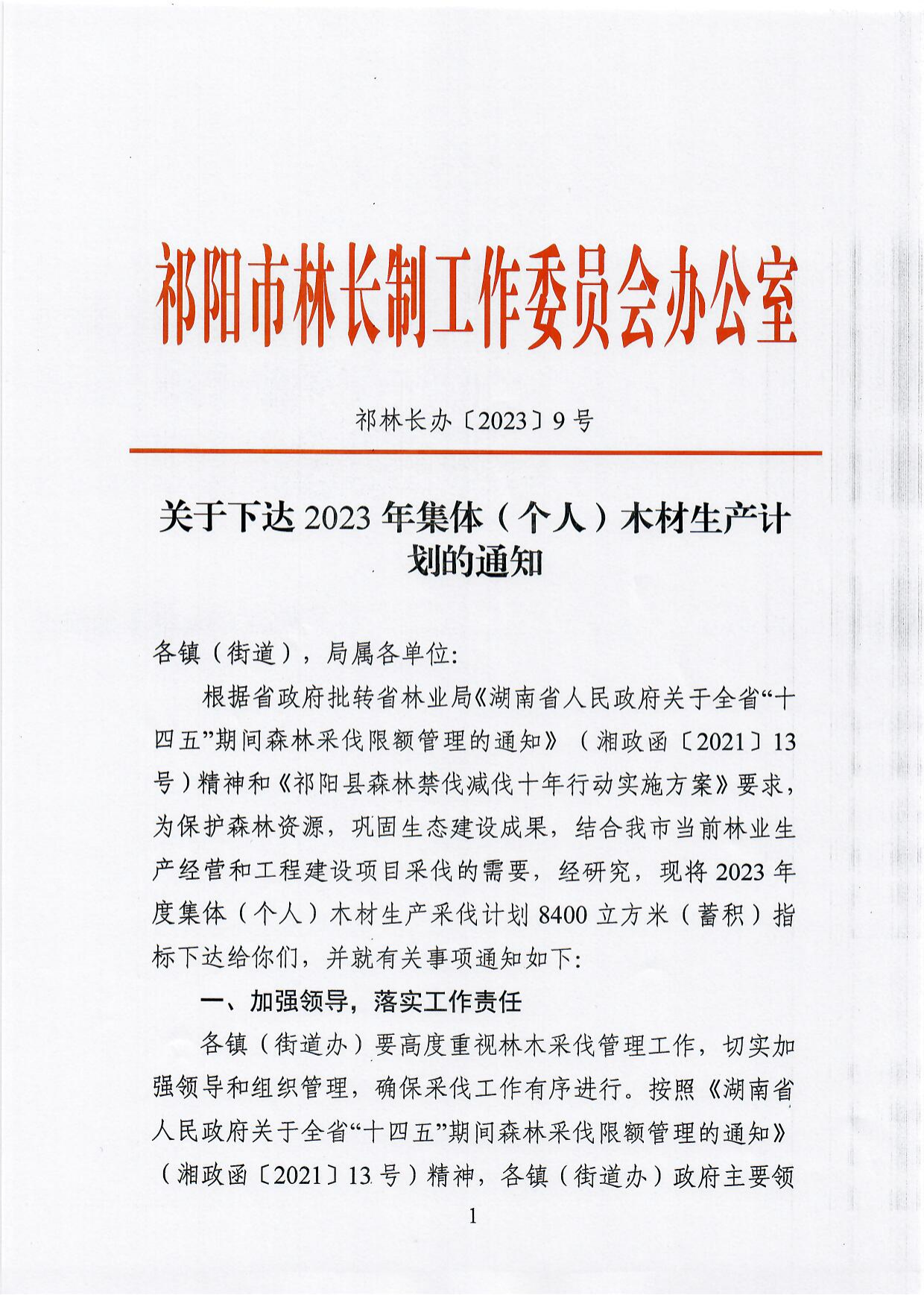 关于下达2023年集体(个人)木材生产计划的通知