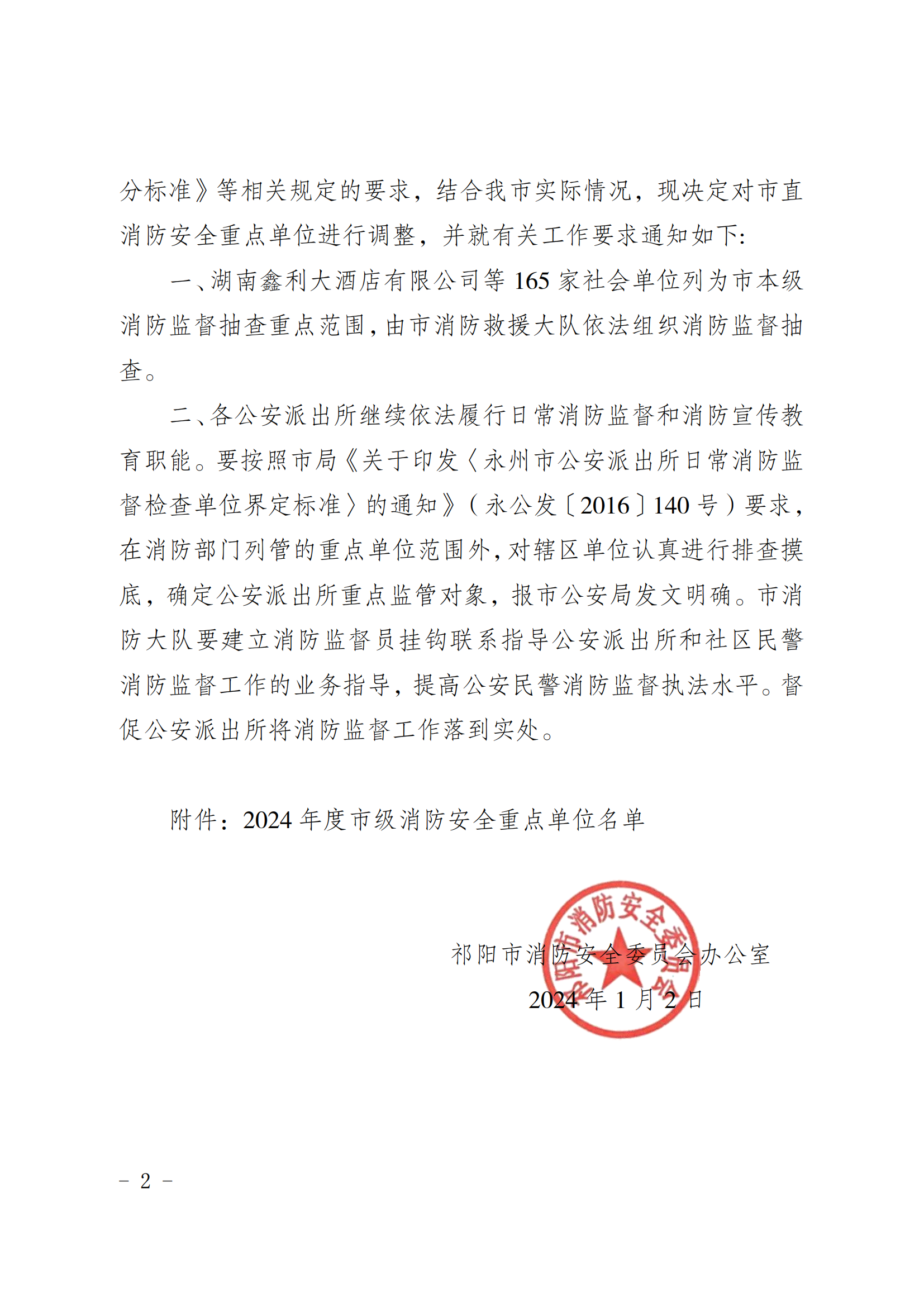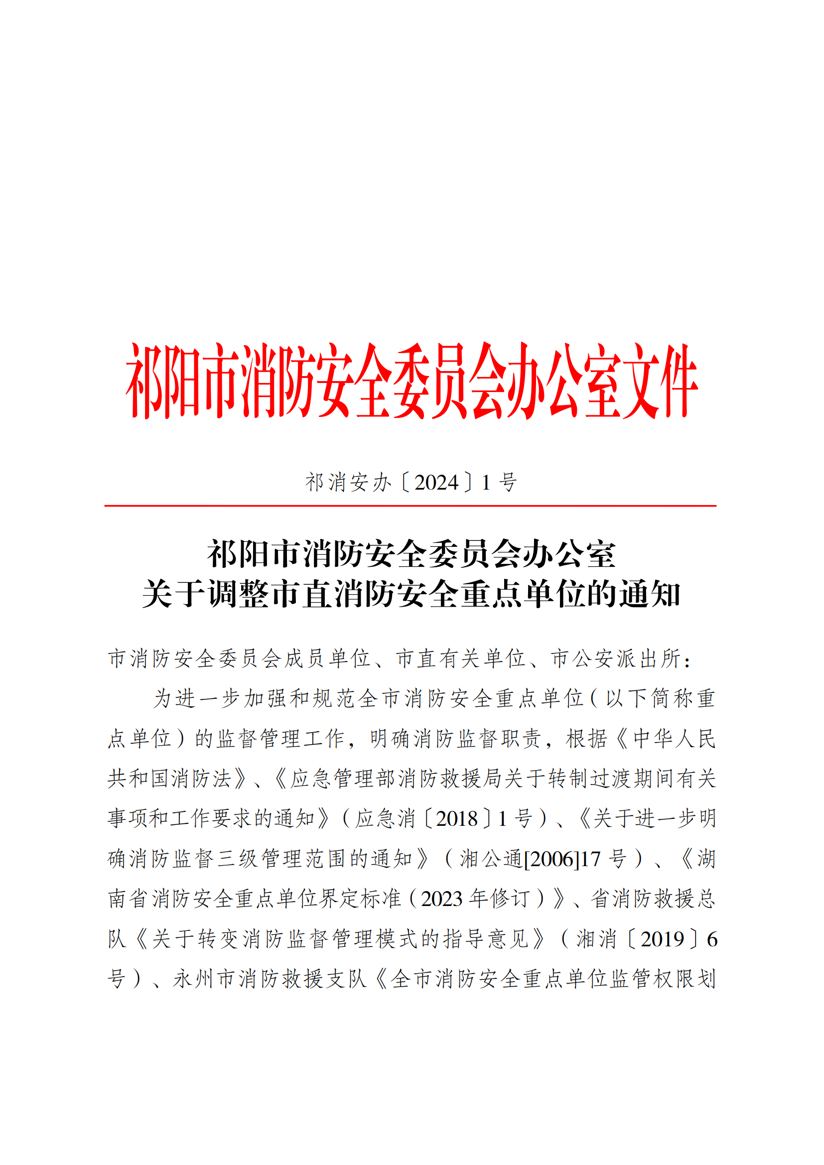 祁阳市消防安全委员会办公室关于调整市直消防安全重点单位的通知