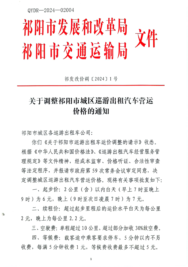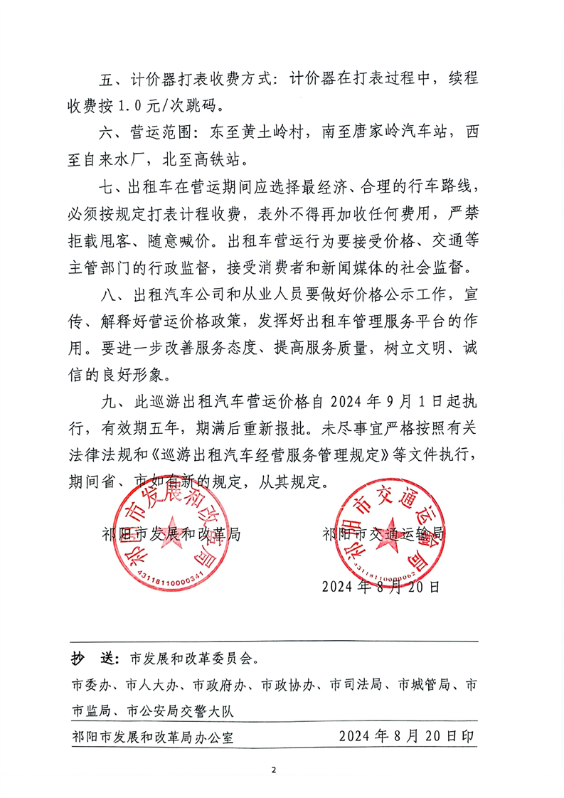 关于调整祁阳市城区巡游出租汽车营运价格的通知
