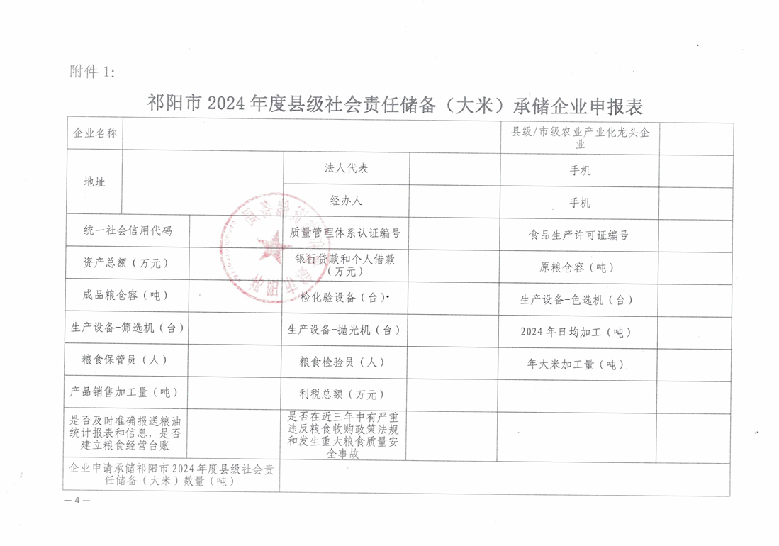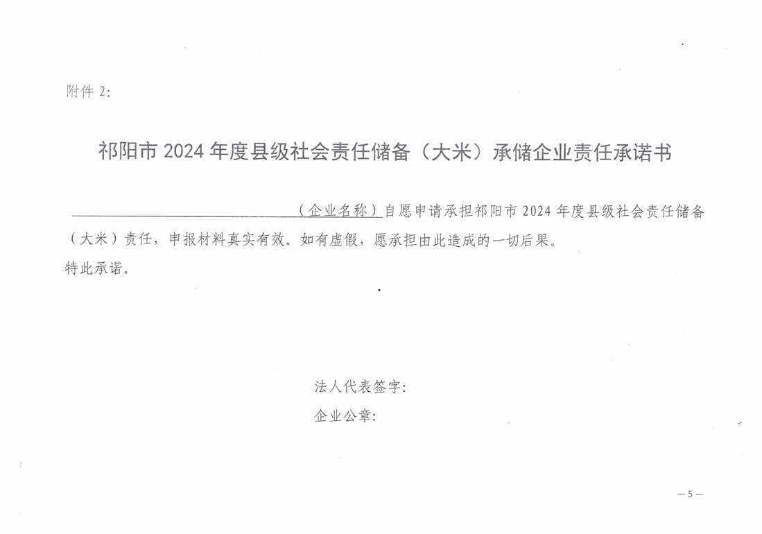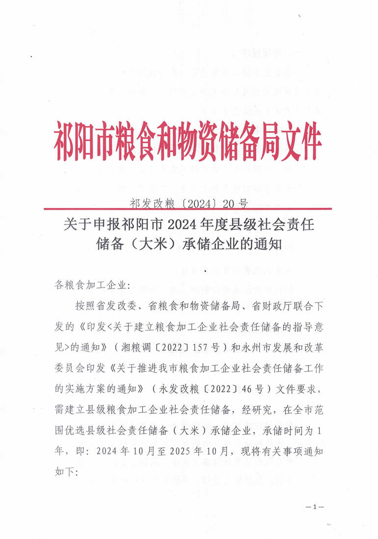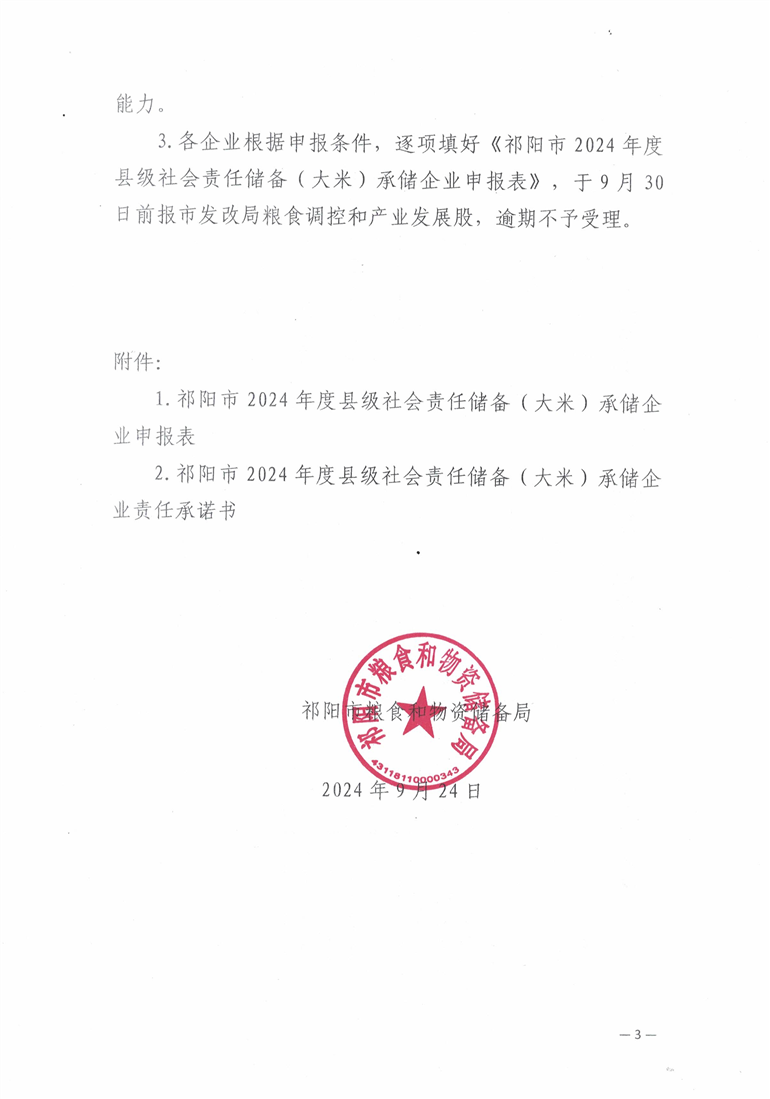 关于申报祁阳市2024年度县级责任储备(大米)承储企业的通知