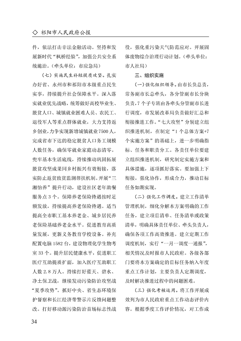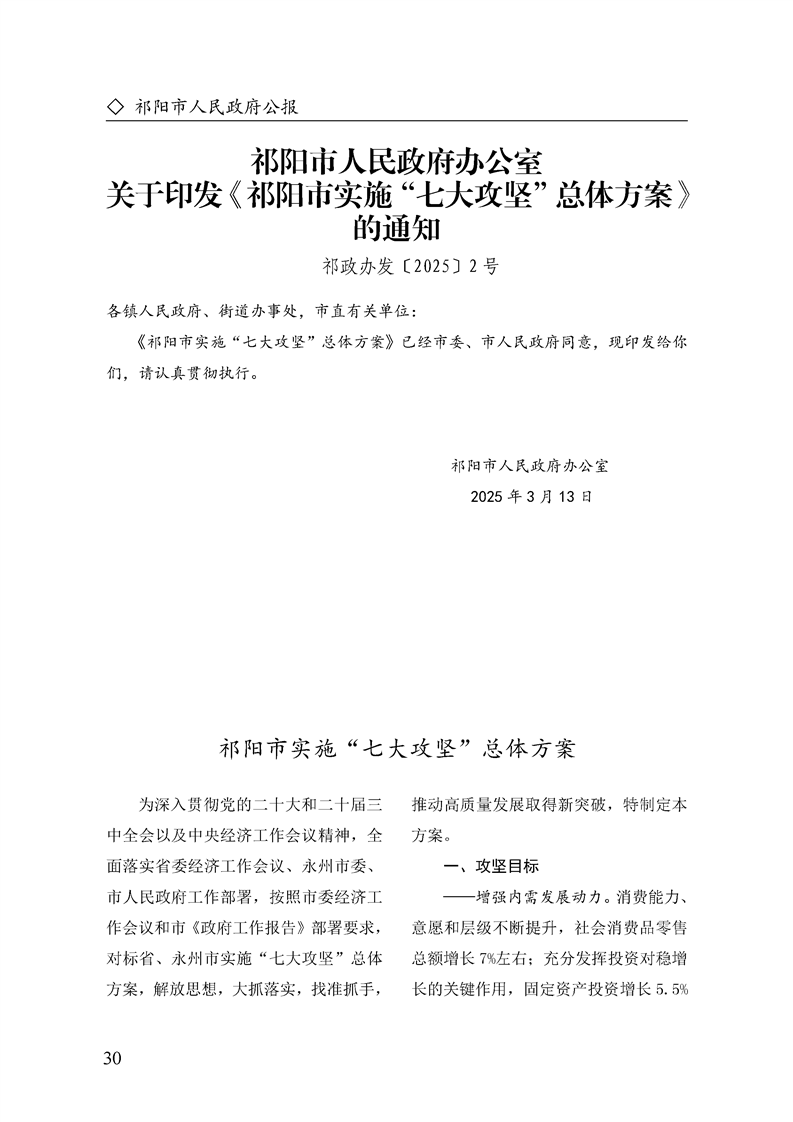 祁阳市人民政府办公室关于印发《祁阳市实施“七大攻坚”总体方案》的通知