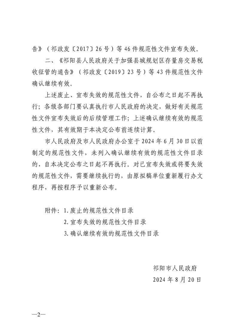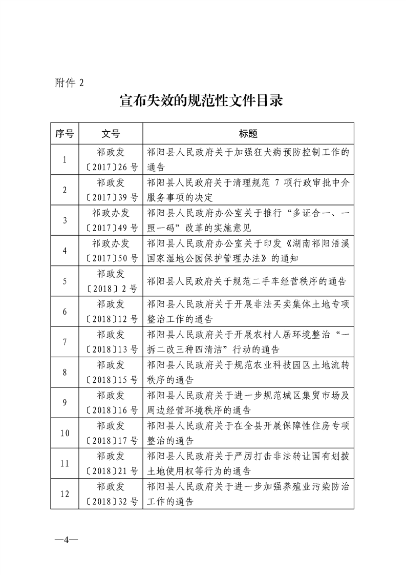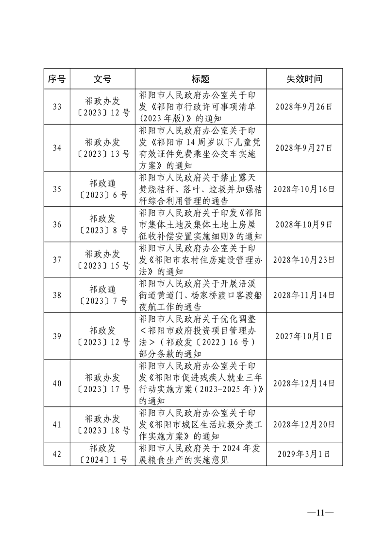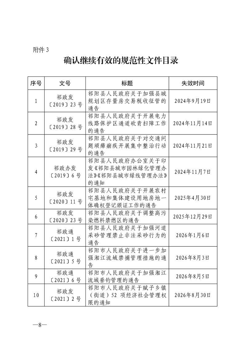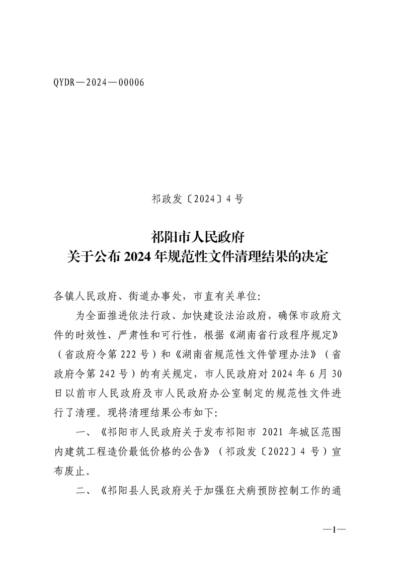 祁阳市人民政府关于公布2024年规范性文件清理结果的决定