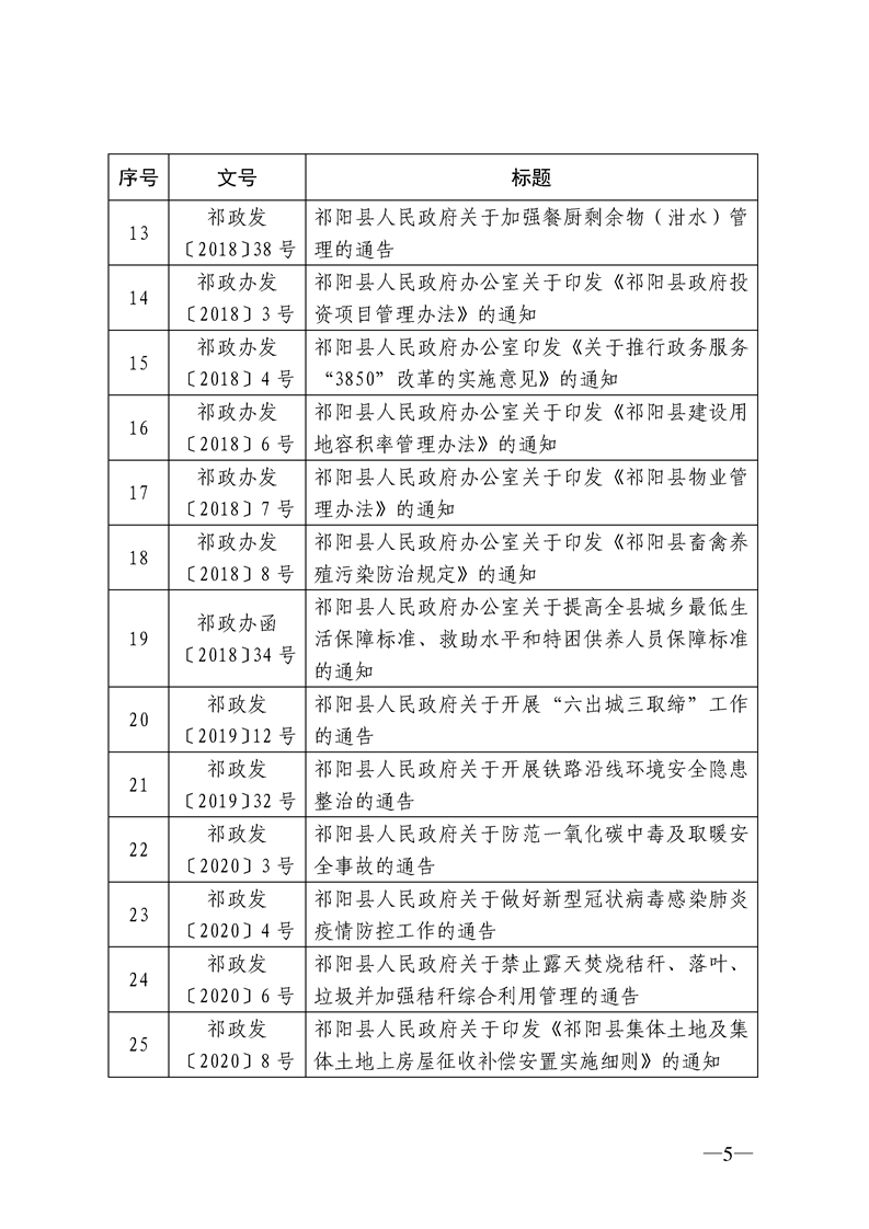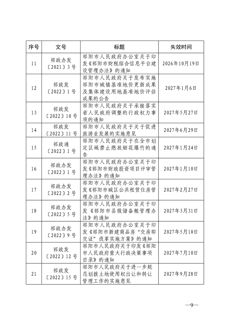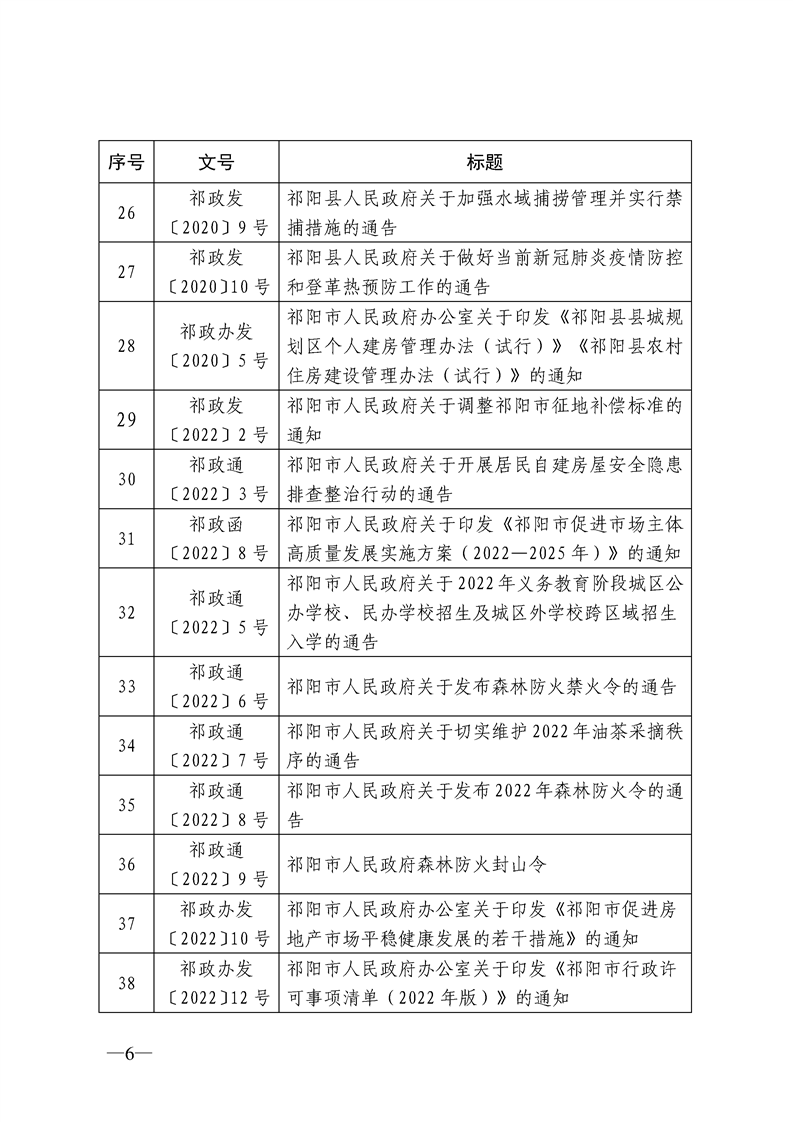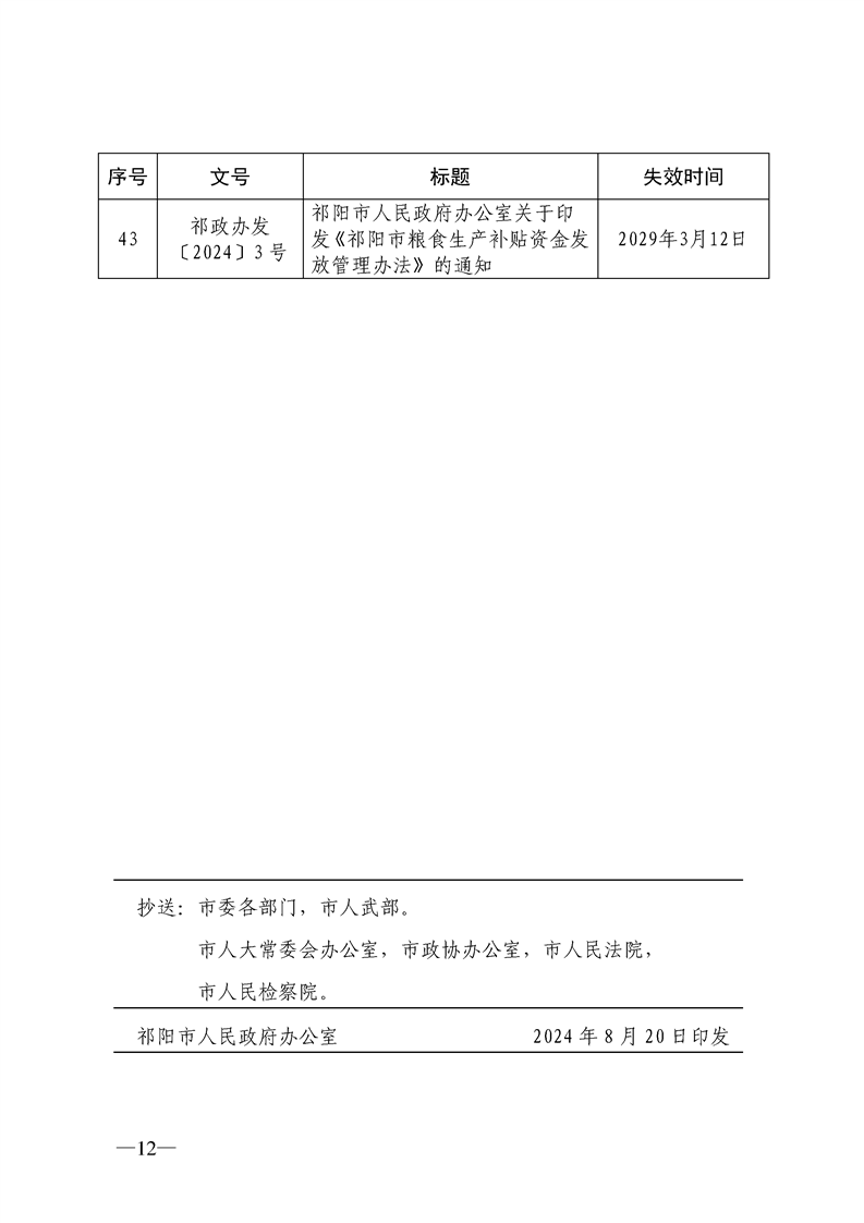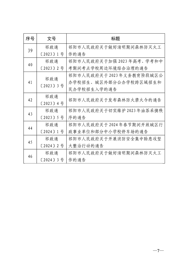 祁阳市人民政府关于公布2024年规范性文件清理结果的决定