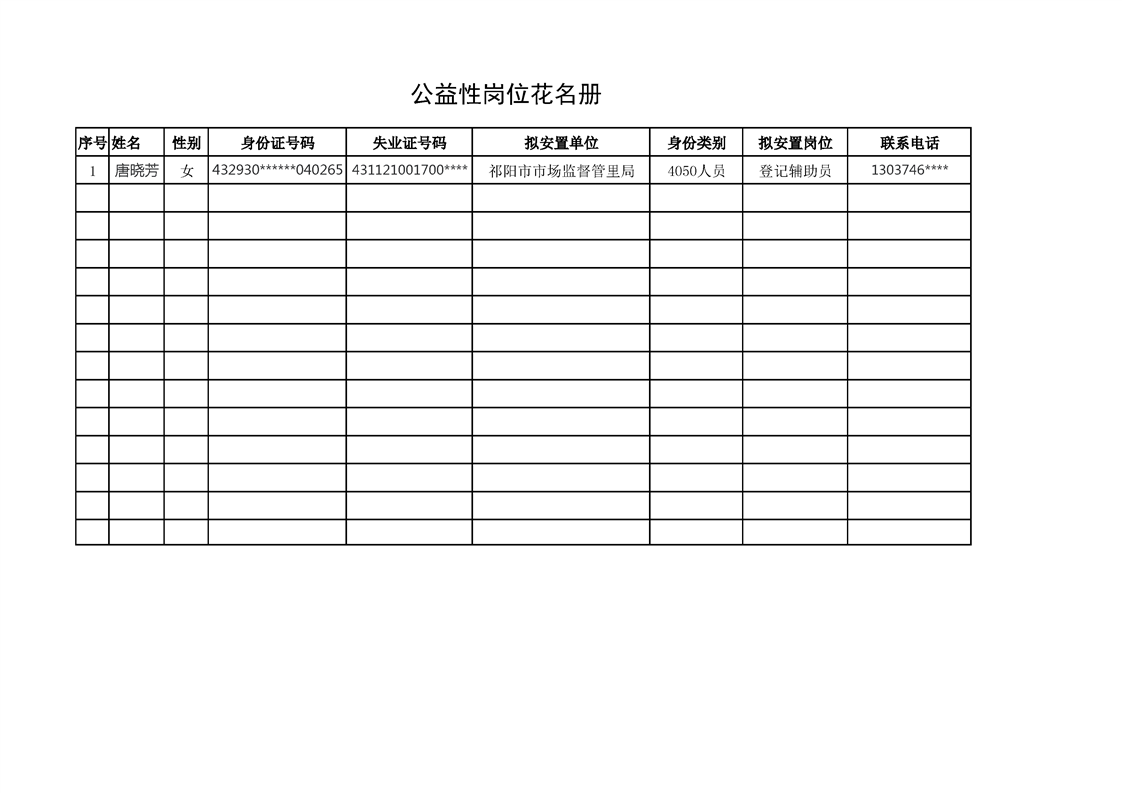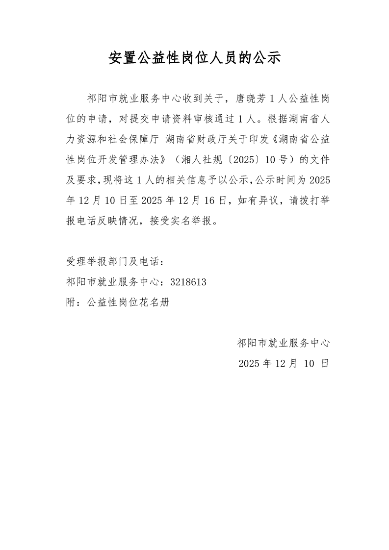 安置公益性岗位人员的公示