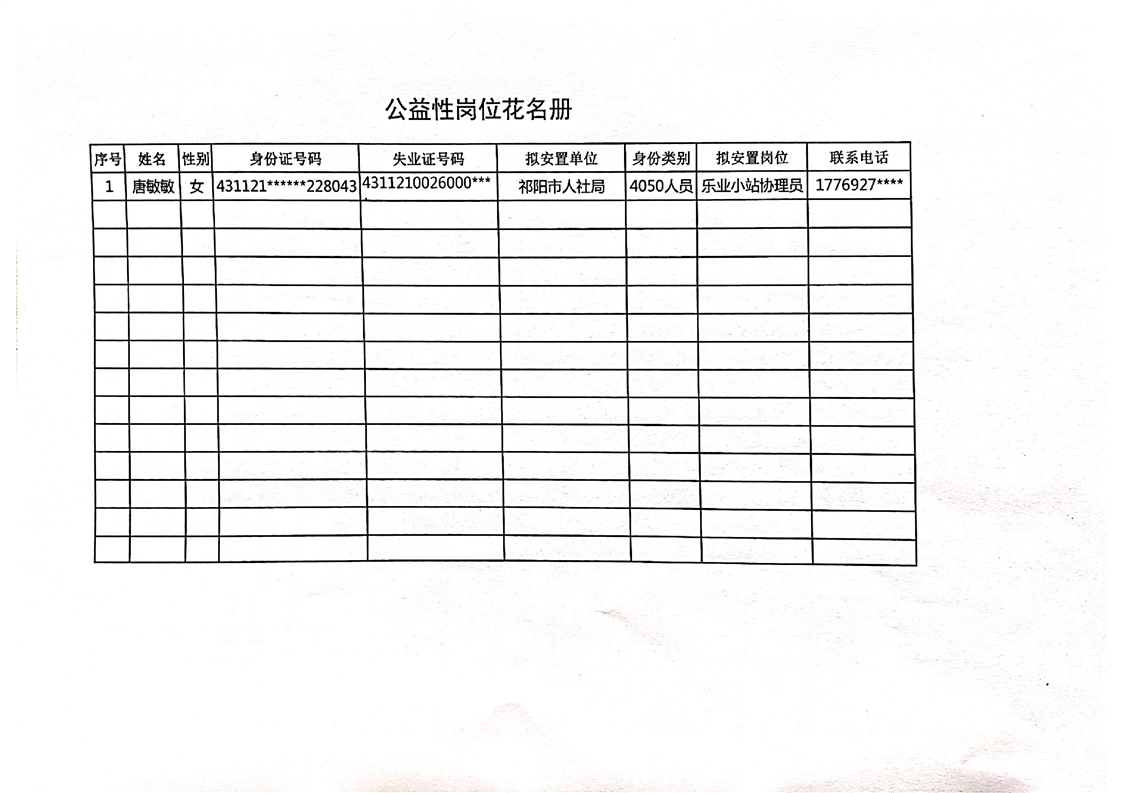 安置公益性岗位人员的公示
