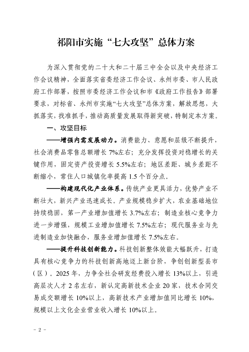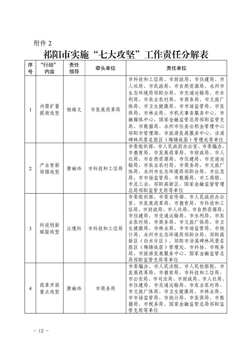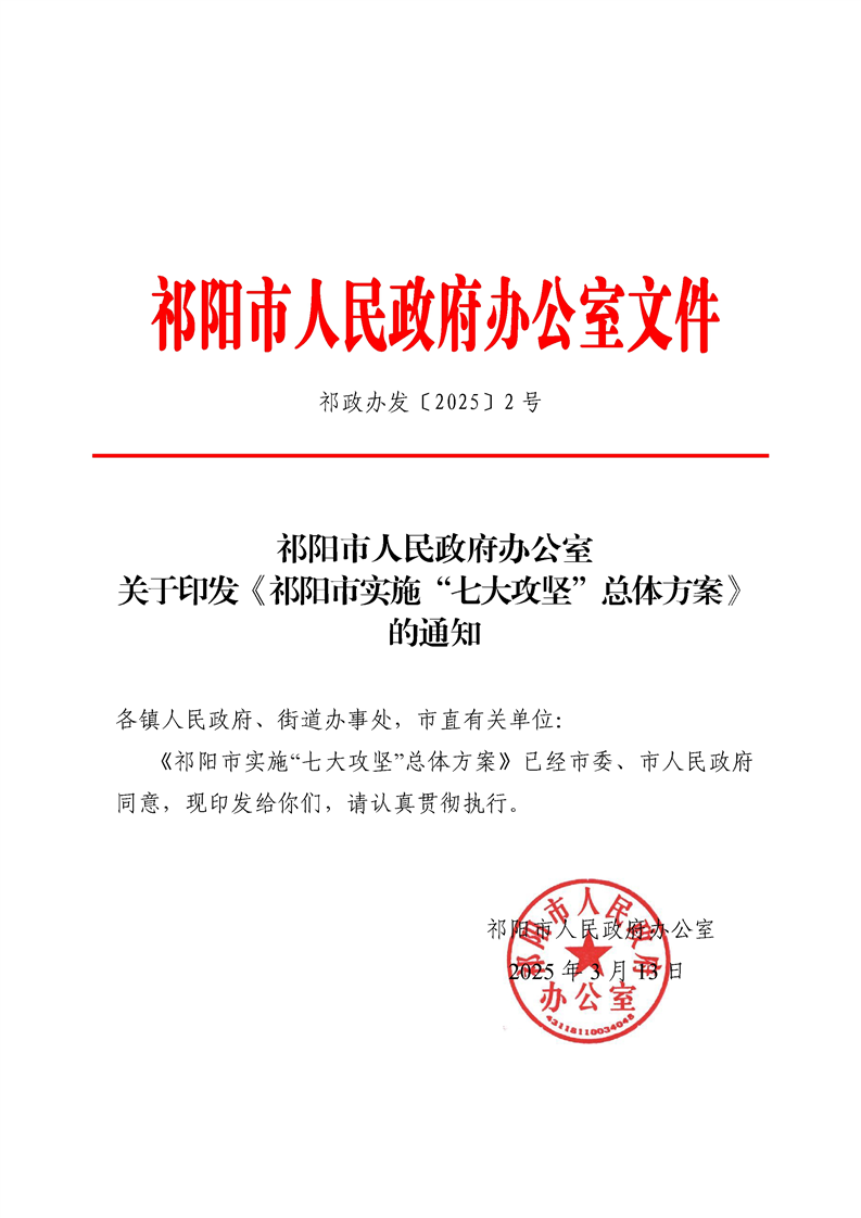 祁阳市人民政府办公室关于印发《祁阳市实施“七大攻坚”总体方案》的通知