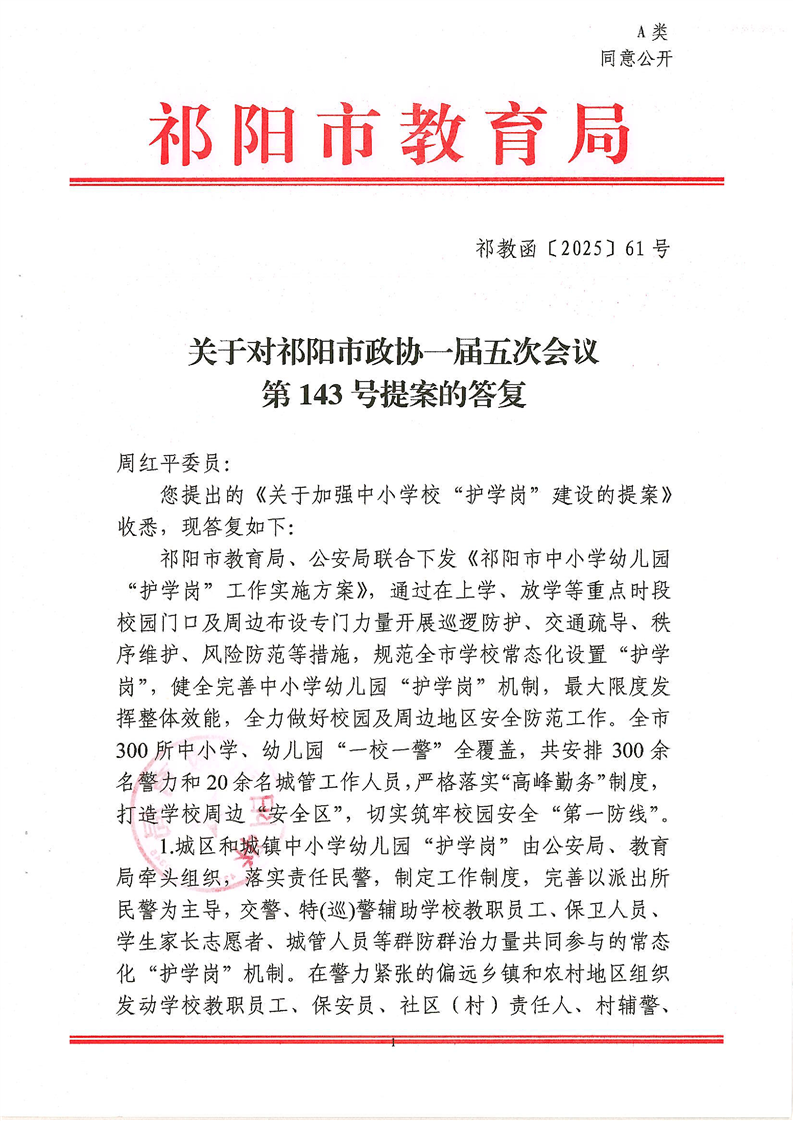 祁教函[2025]61号 关于对祁阳市政协一届五次会议第143号提案的答复