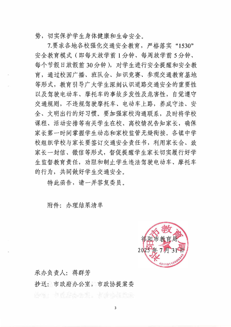 祁教函[2025]60号 关于对祁阳市政协一届五次会议第141号提案的会办意见