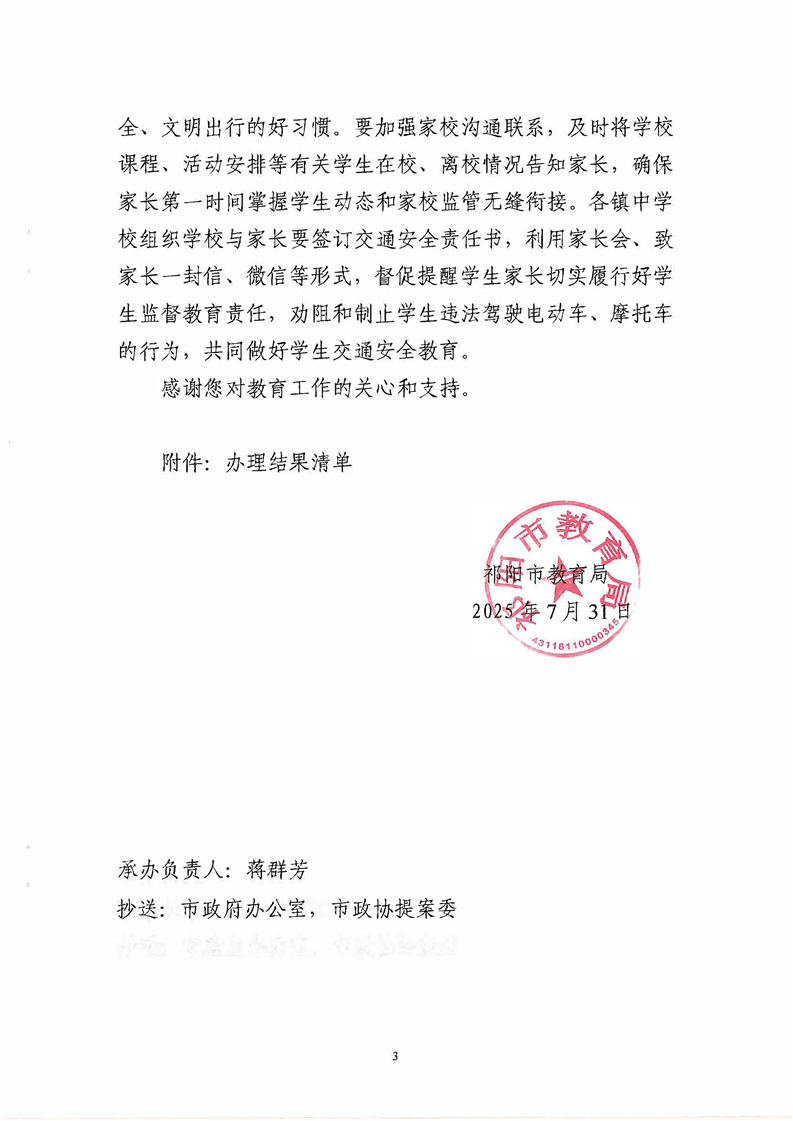 祁教函[2025]71号 关于对祁阳市政协一届五次会议第161号提案的答复