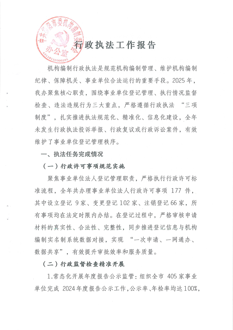 中共祁阳市委机构编制委员会办公室2025年行政执法工作报告