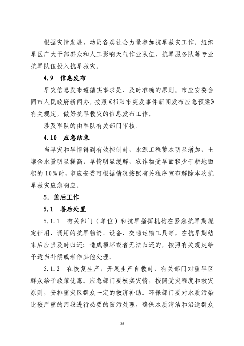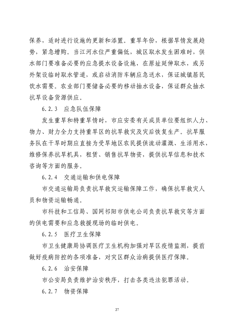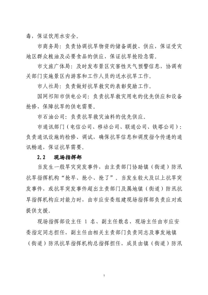 关于印发《祁阳市抗旱应急预案(试行)》的通知