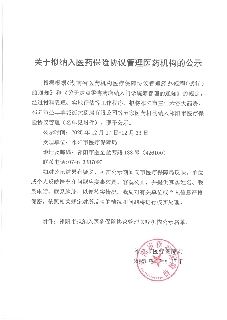 关于拟纳入医药保险协议管理医药机构的公示