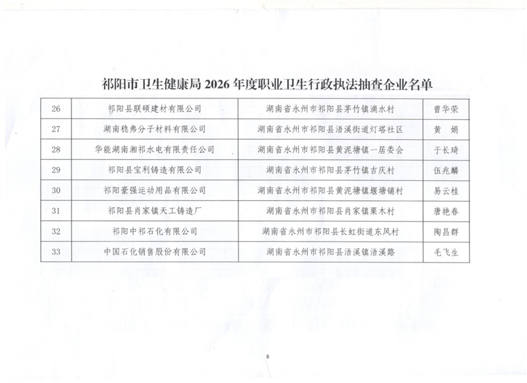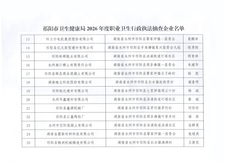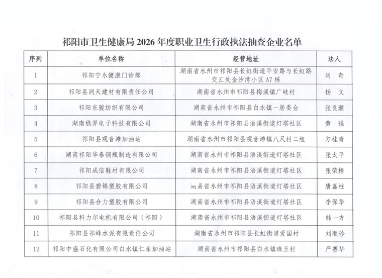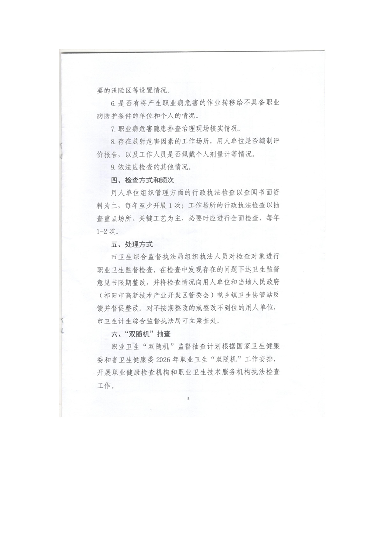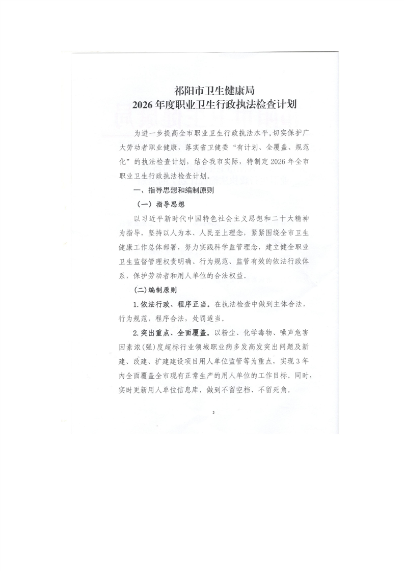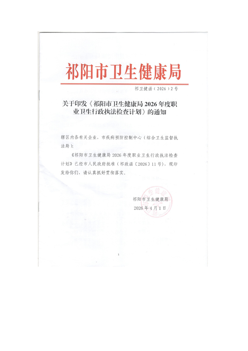 关于印发《祁阳市卫生健康局2026年度职业卫生行政执法检查计划》的通知