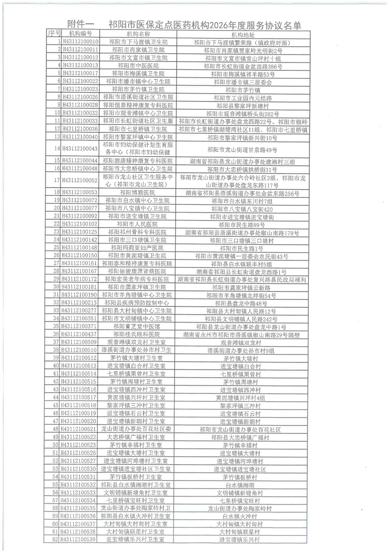 关于祁阳市医保定点医药机构2026年度服务协议签订情况的公示