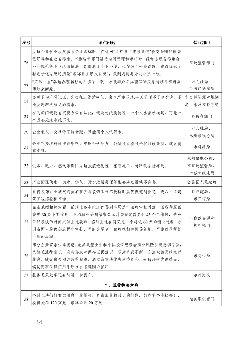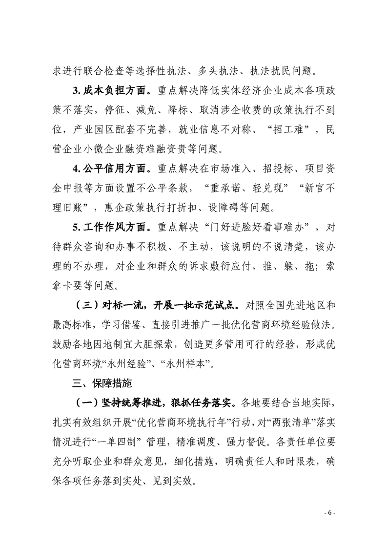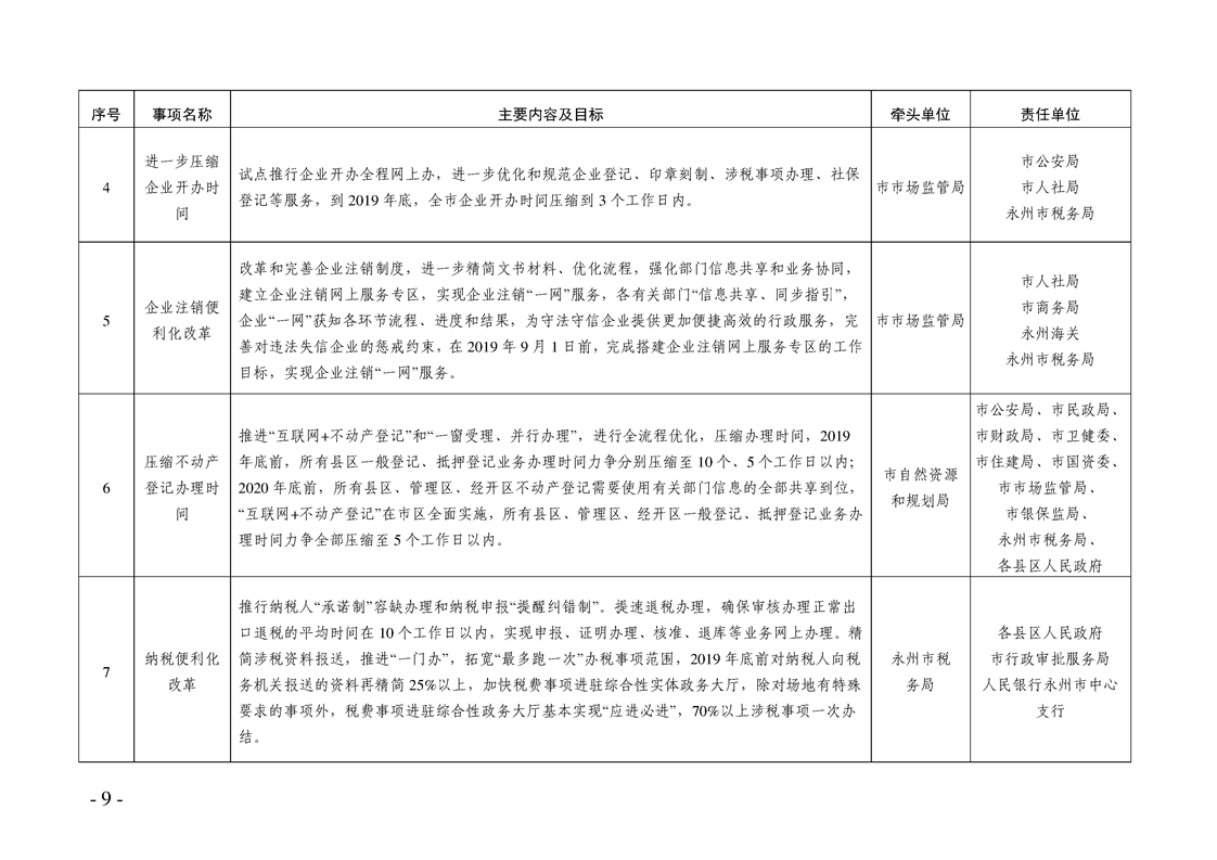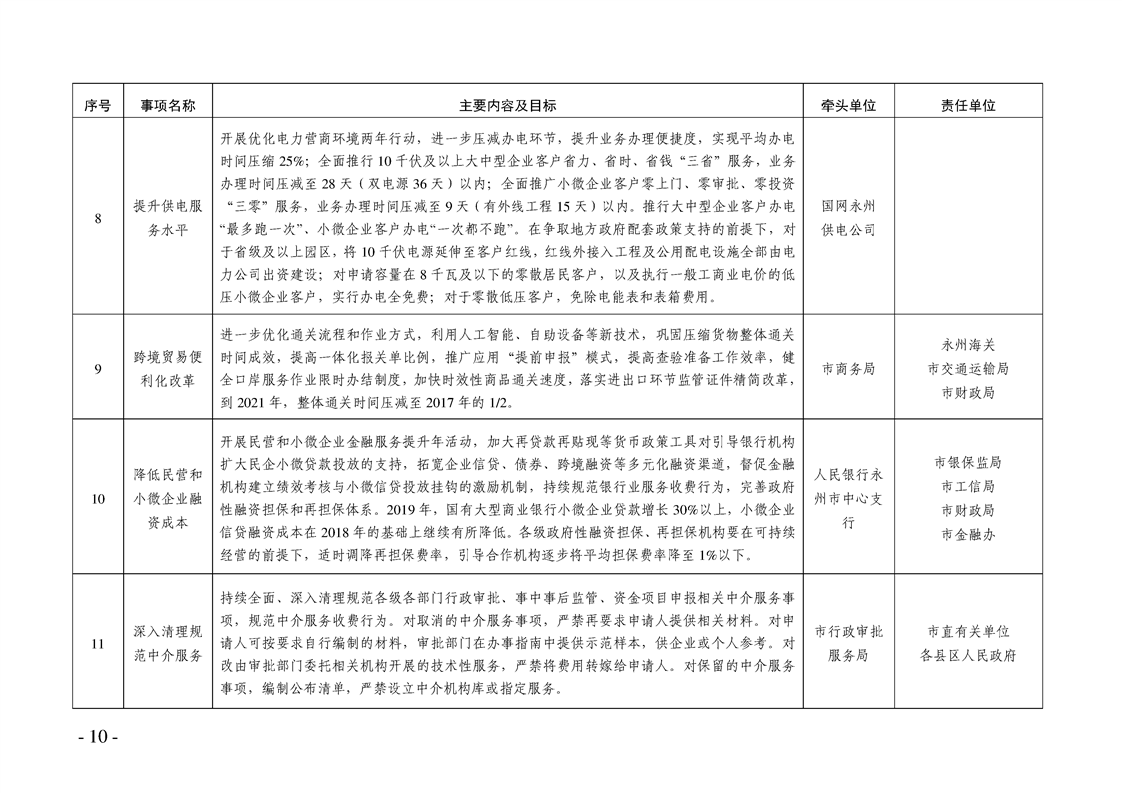 关于印发《永州市“优化营商环境执行年“行动方案》的通知