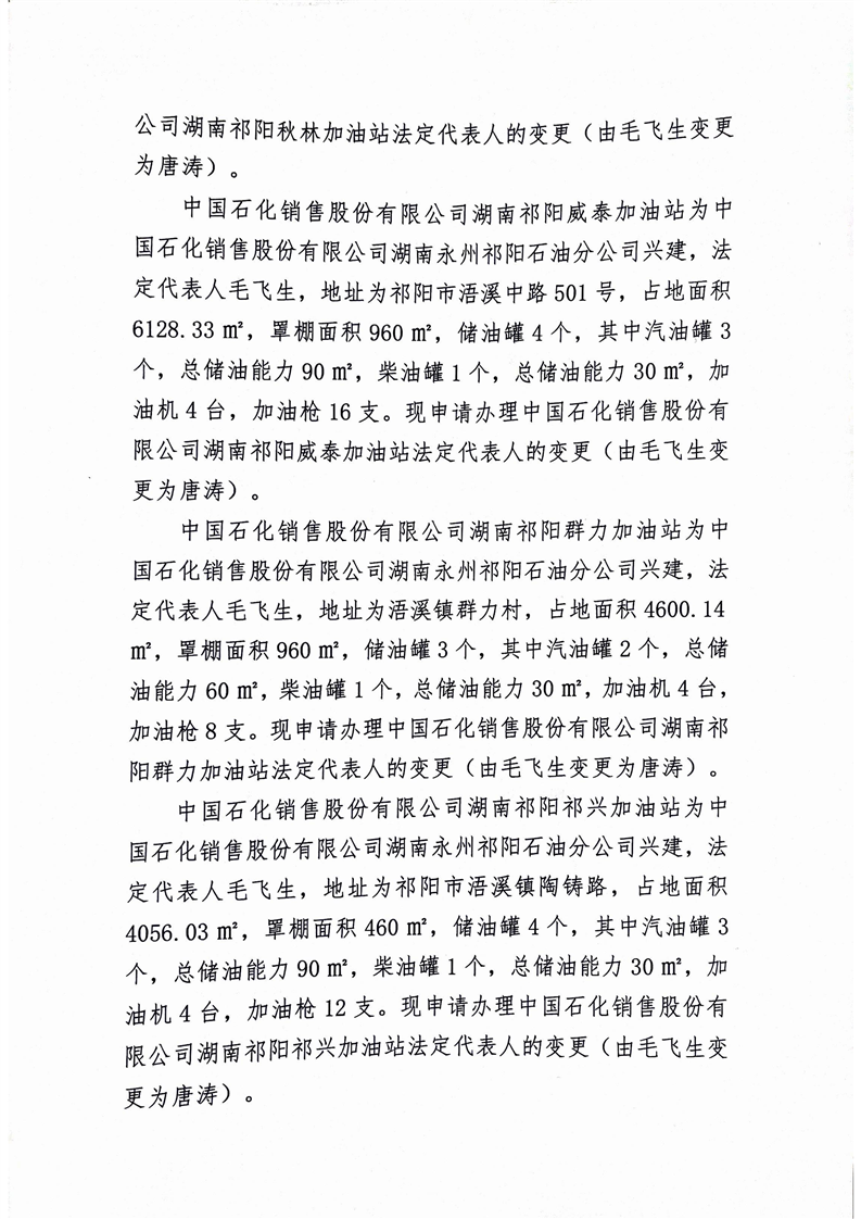 关于对中国石化销售股份有限公司湖南祁阳黎家坪加油站等十六家加油站法定代表人变更的公示