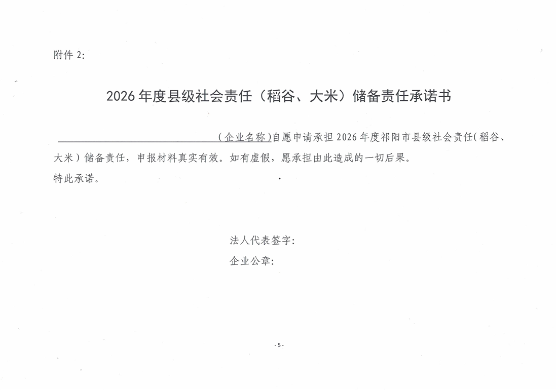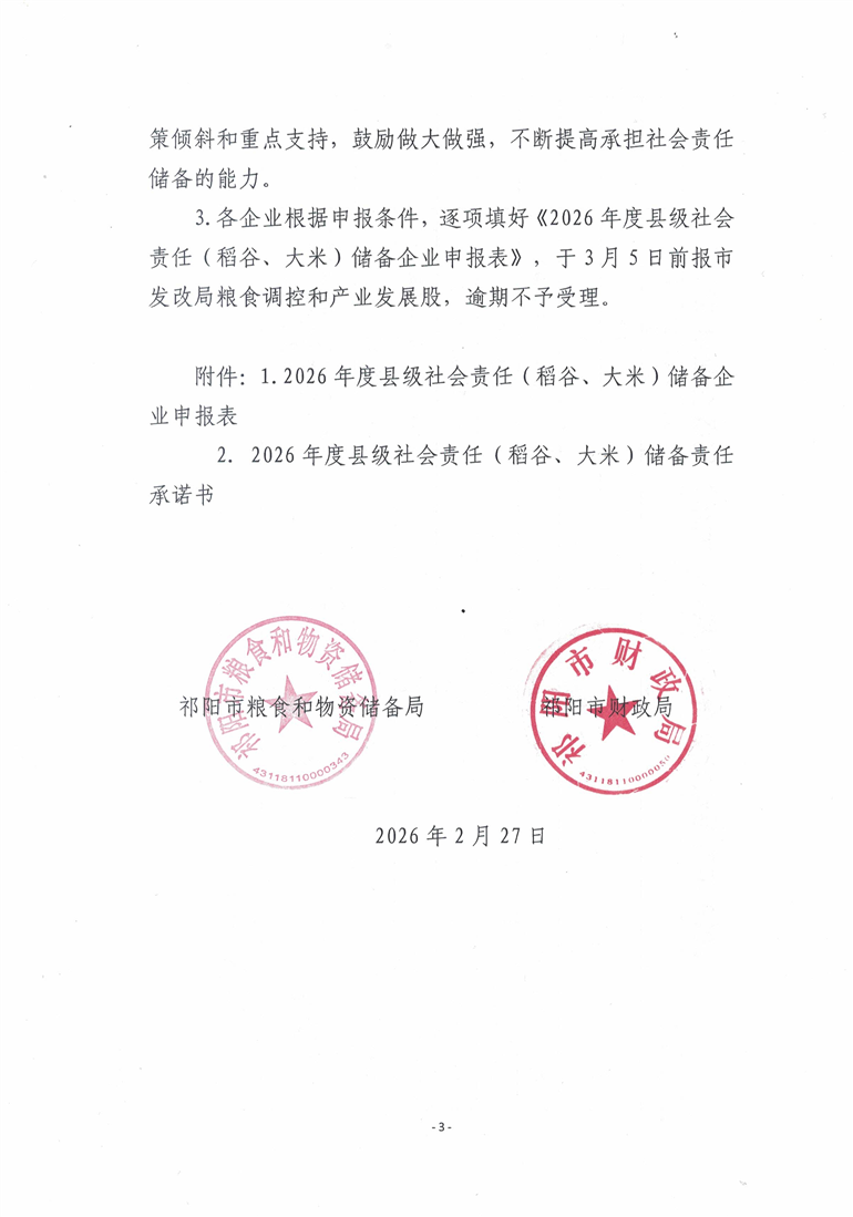 关于申报2026年度县级社会责任(稻谷、大米)储备企业的通知